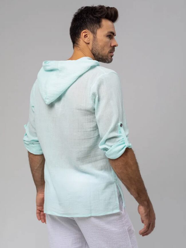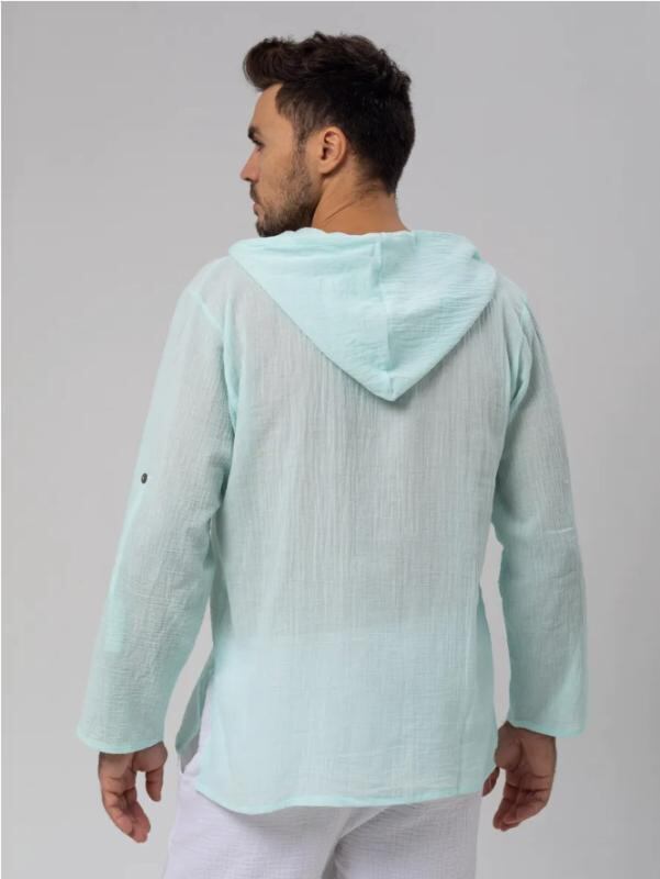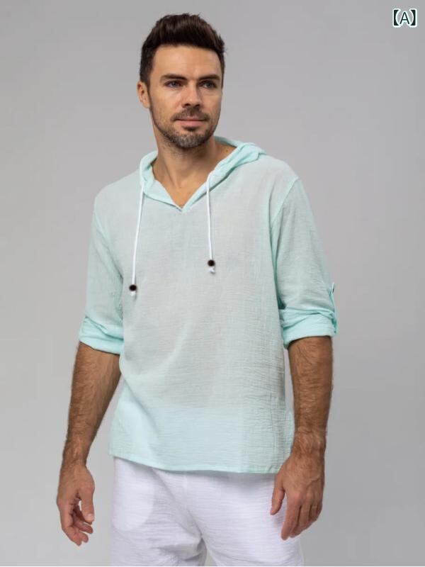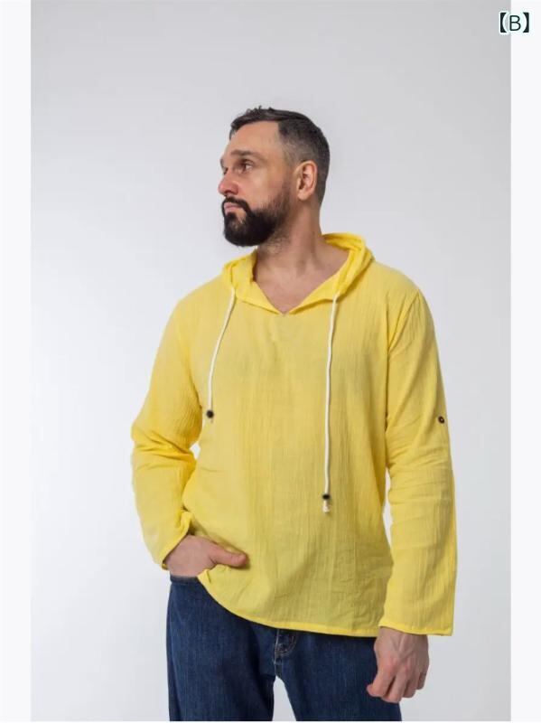 シャツ メンズ フード付き 無地 綿麻 コットンリネン 薄手 軽量 通気性 ゆったり ルーズシルエット 長袖 アウトドア カジュアル 普段使い 春秋