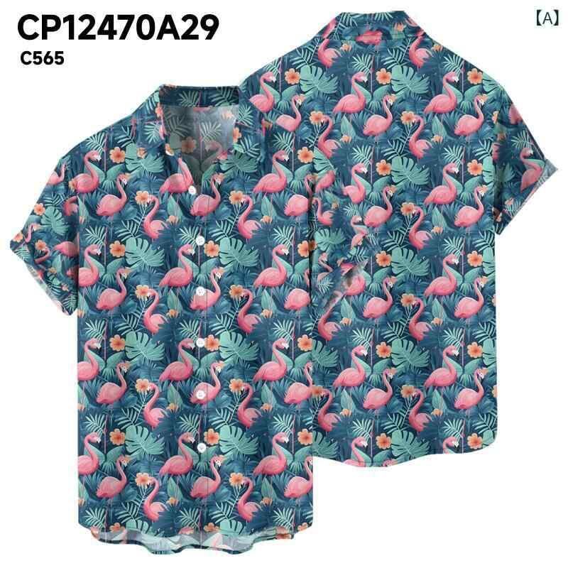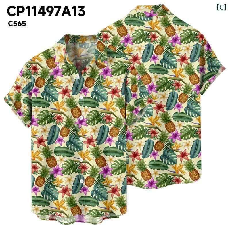 シャツ メンズ 半袖 開襟シャツ オープンカラーシャツ ハワイアン柄 3Dプリント マルチカラー ポリエステル製 ルーズフィット ゆったり カジュアル 普段使い 夏用