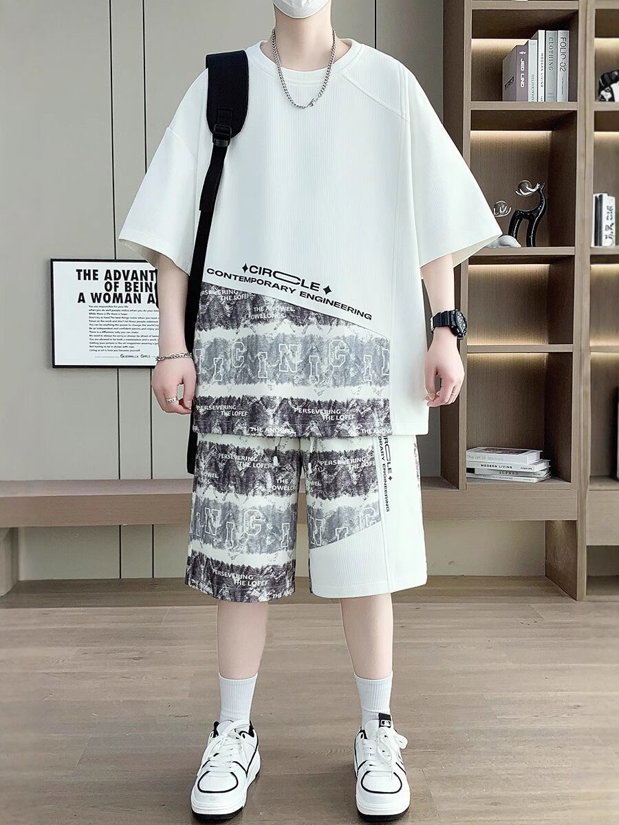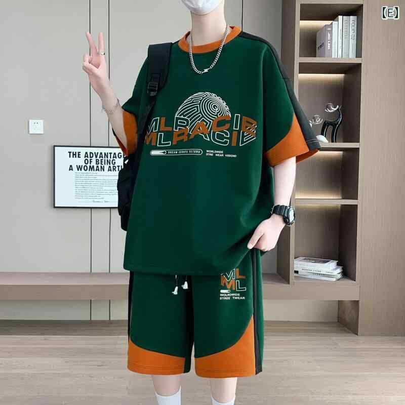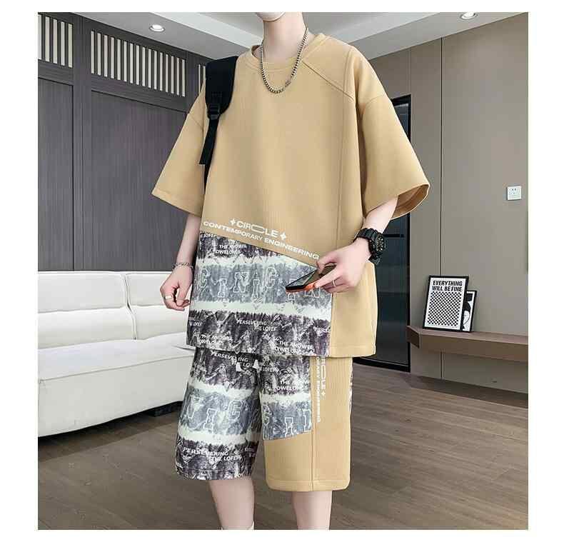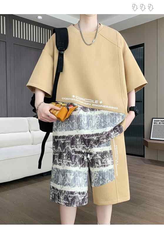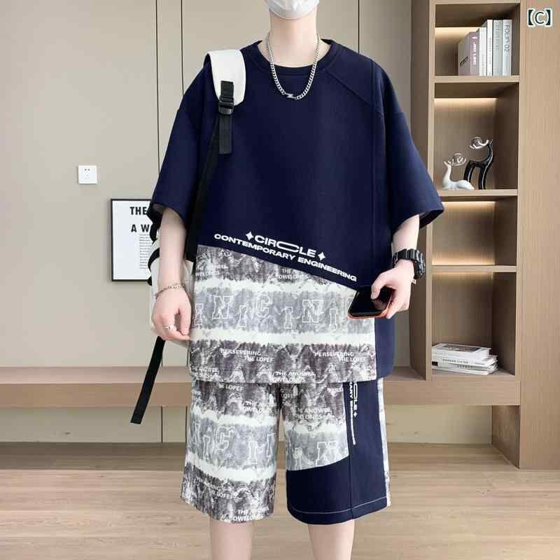 半袖Tシャツ ショートパンツ メンズ セットアップ カジュアル ストリート系 韓国ファッション スタイリッシュ 薄手 軽量 ポリエステル混紡 夏 普段使い デイリーユース 部屋着