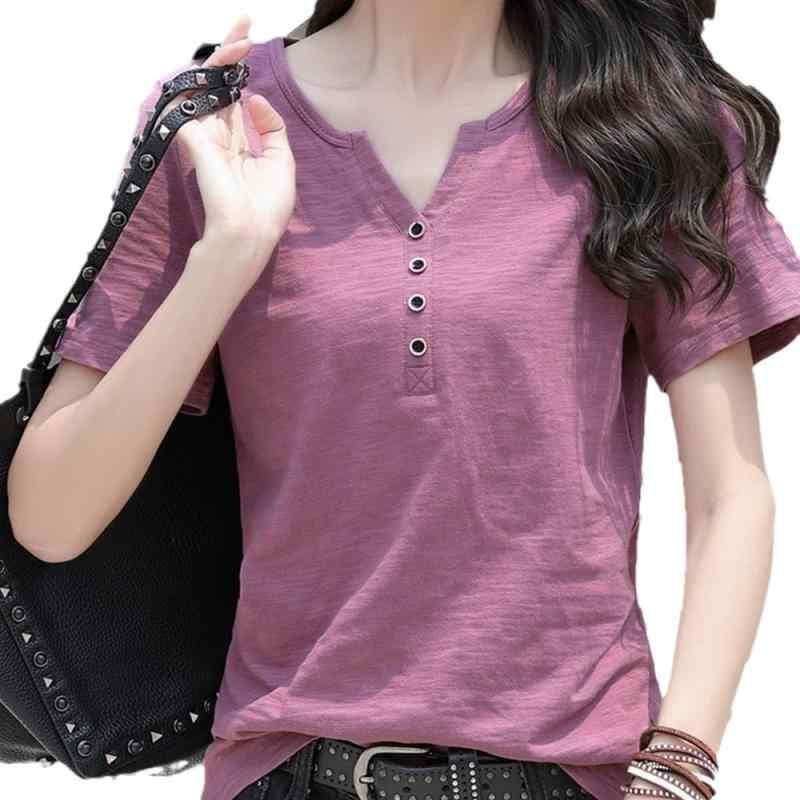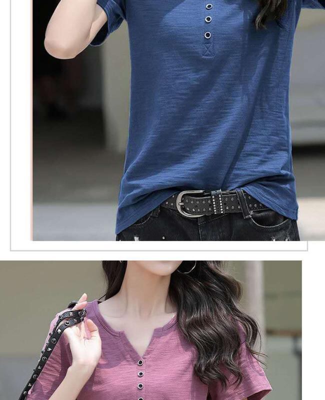 ・カテゴリ: Tシャツ・スタイル: きれいめ通勤・タイプ: プルオーバー・主な素材: 綿、スパンデックス・ネックライン: Vネック・袖丈: 半袖・柄: 無地・加工: ビーズ装飾・シルエット: ゆったり・着丈: 普通丈(50cm〜65cm)・袖タイプ: レギュラー・デザイン要素: ボタン・カラー展開: ブルー、ミリタリーグリーン、ホワイト、パープル、ブラック、ピンク、オレンジレッド・サイズ展開: S、M、L、XL、XXL、XXXL、XXXXL