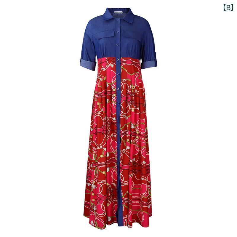 ・カテゴリ: ワンピース・スタイル: カジュアル、ストリート・主な素材: デニム、ポリエステル、スパンデックス・ネックライン: 襟付き・袖丈: 長袖・丈: ロング丈・スカートシルエット: フレア・ウエスト: ハイウエスト・柄: 抽象柄・加工: プリント・前立て: ボタン・カラー展開: ブルー、レッド・サイズ展開: S、M、L、XL、XXL、XXXL