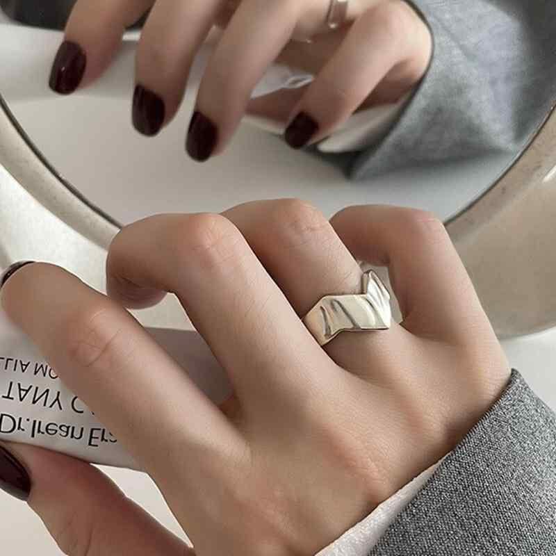 指輪 レディース V字型 幾何学模様 オープンリング レトロ 個性的 クール スタイリッシュ ファッションリング 重ね付け ミックスマッチ デイリーユース オフィス カジュアル シルバーカラー 金属製