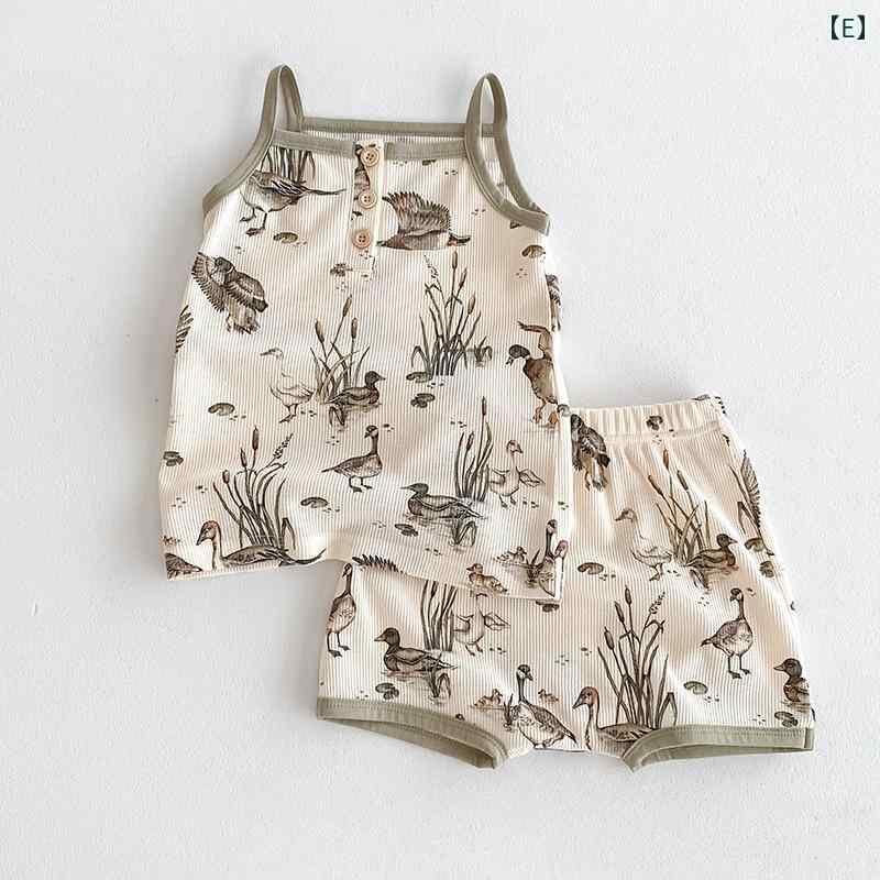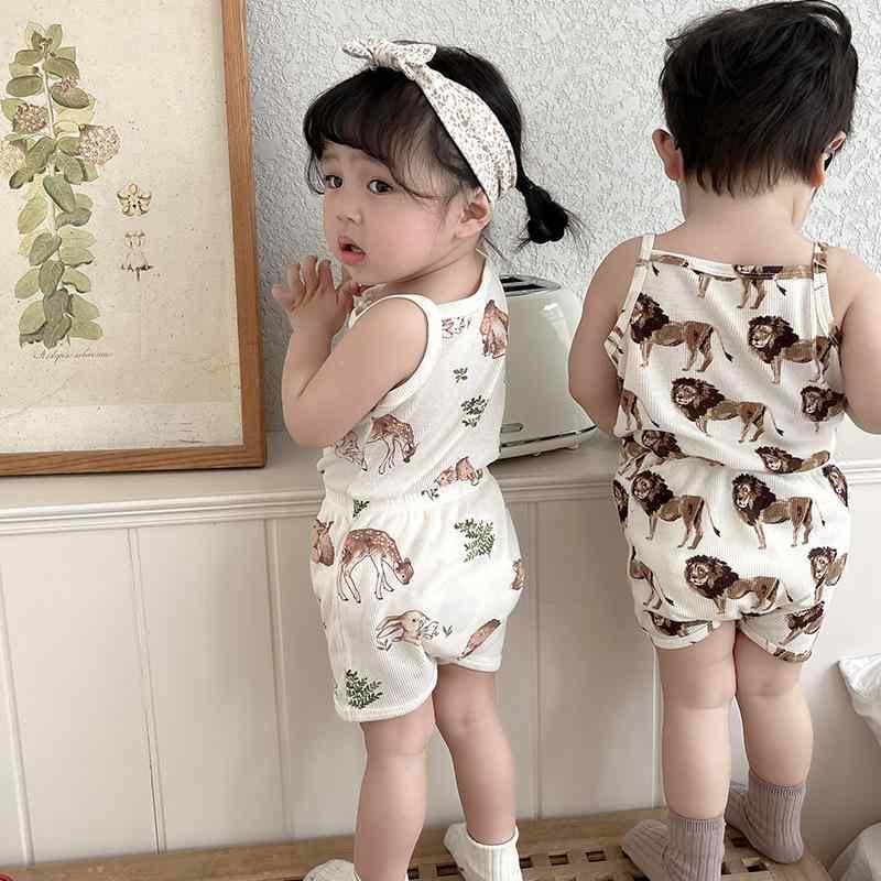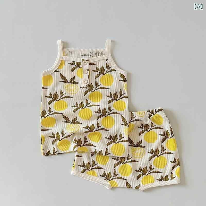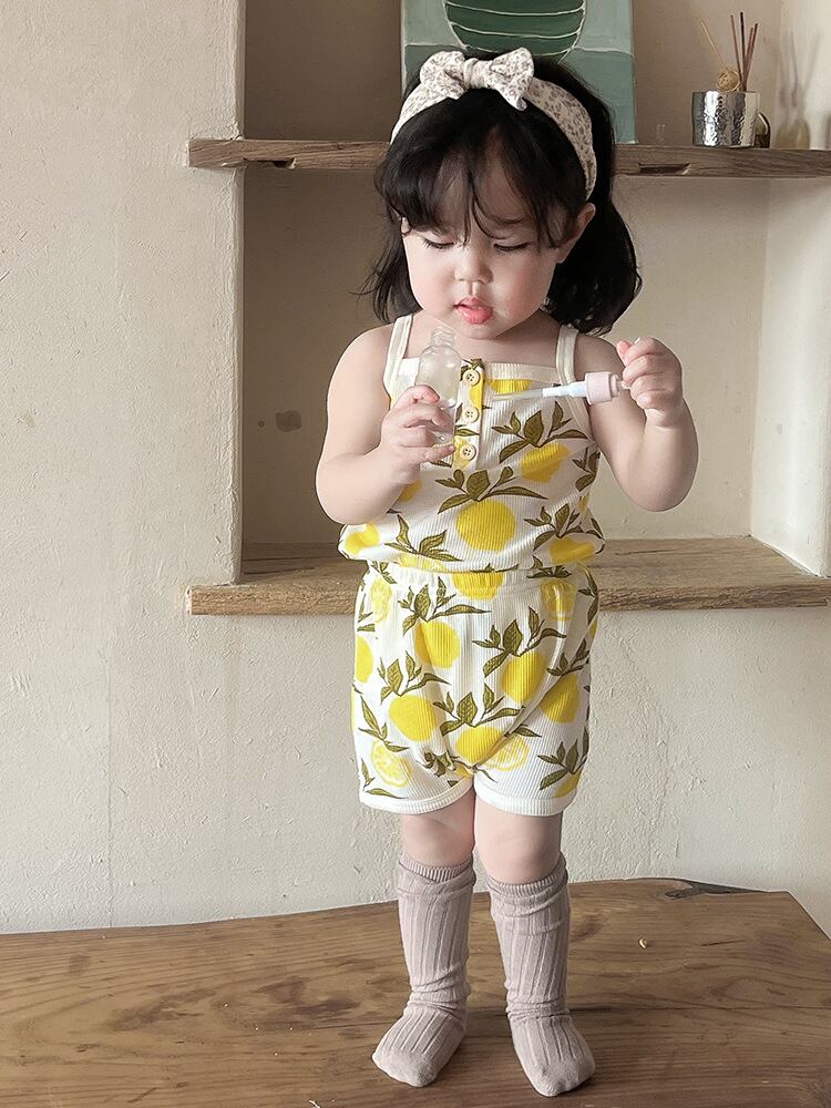 パジャマ ベビー 女の子 綿100% ワッフル生地 タンクトップ キャミソール 上下セット 北欧風 韓国風 動物柄 かわいい レモン柄 部屋着 ナイトウェア ソフト加工 肌に優しい 夏用 快適 ルームウェア