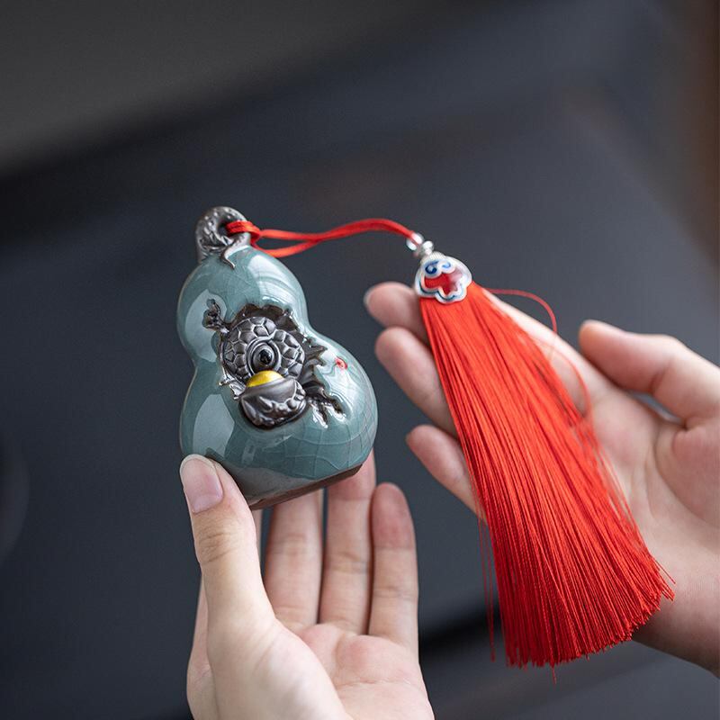 置物 陶器製 瓢箪 オブジェ 哥窯開片釉 上品なひび割れ模様 中華風 インテリア飾り リビング 書斎 玄関 ディスプレイ 縁起物 開運グッズ 工芸品