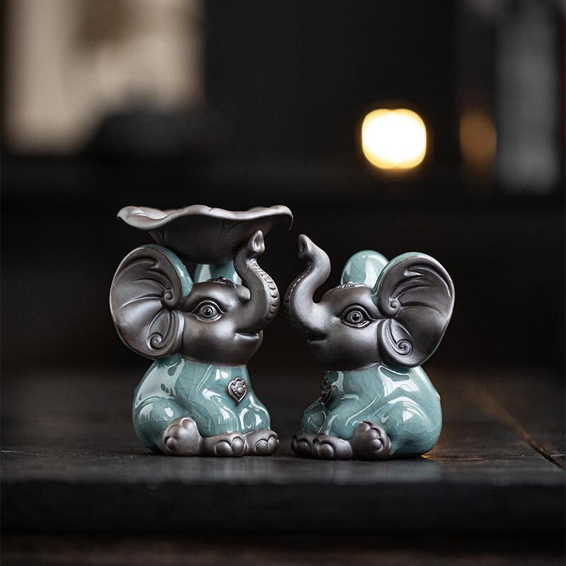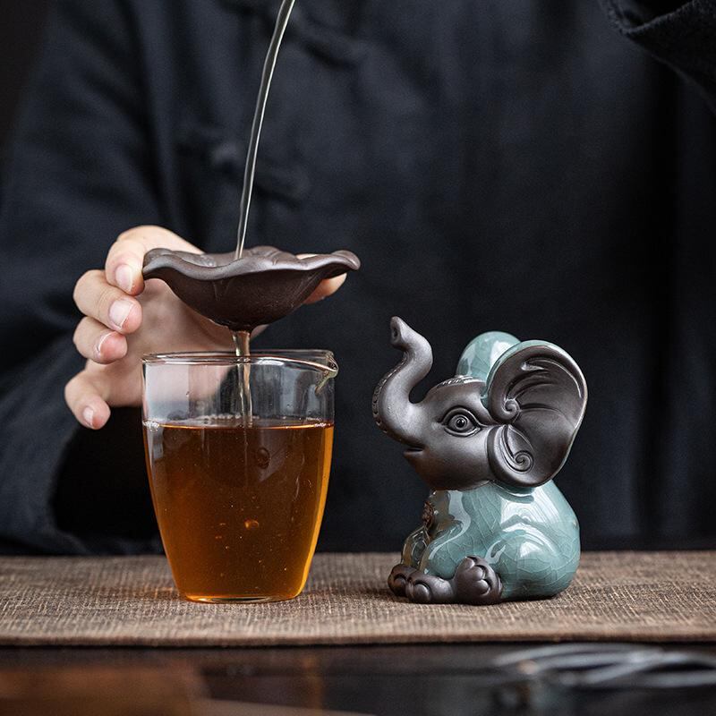茶寵 陶器 象 置物 高級感 茶こし置き 茶漉しスタンド 茶道具 卓上飾り デスクインテリア アニマルモチーフ オブジェ 開運 風水 ユニーク 中国風 和モダン 縁起物 ミニチュア