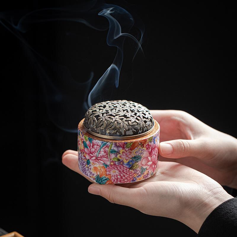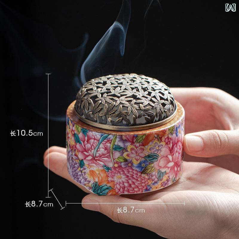 香炉 お香立て 陶器製 磁器製 エナメル彩 花柄 百花繚乱 渦巻き線香 線香対応 室内 リビング 寝室 玄関用 癒し リラックス 高級感 和モダン 白檀 沈香 インセンスホルダー | cybercart