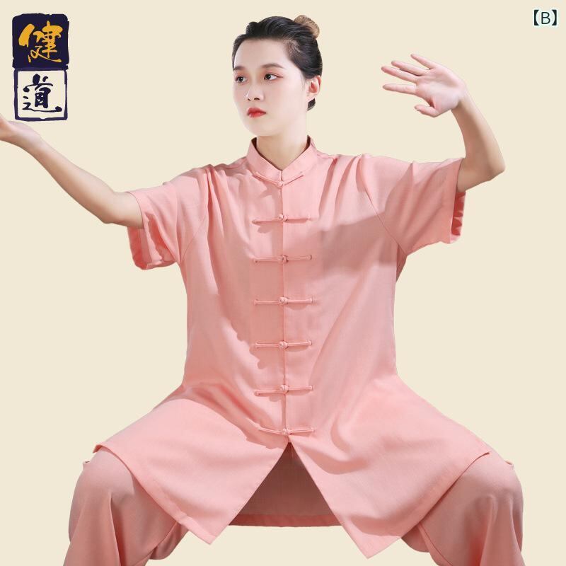 太極服 男女兼用 武術演武服 武道着 太極拳練習着 八段錦 半そで 夏向け 高級感 再生繊維 ナイロン 軽量 吸湿速乾 ダークブルー ピンク ライトブルー