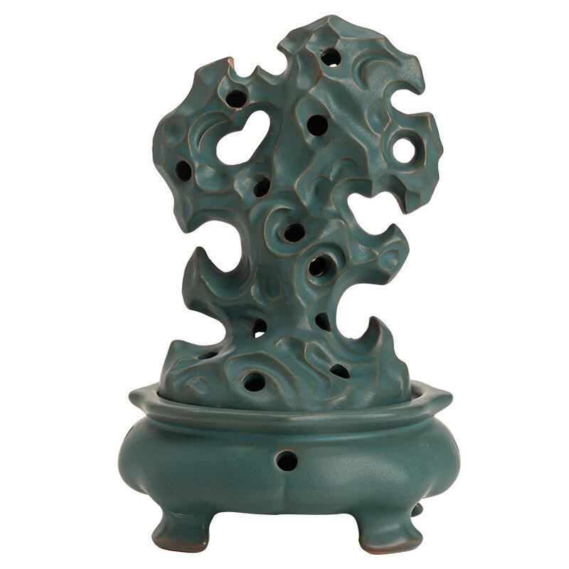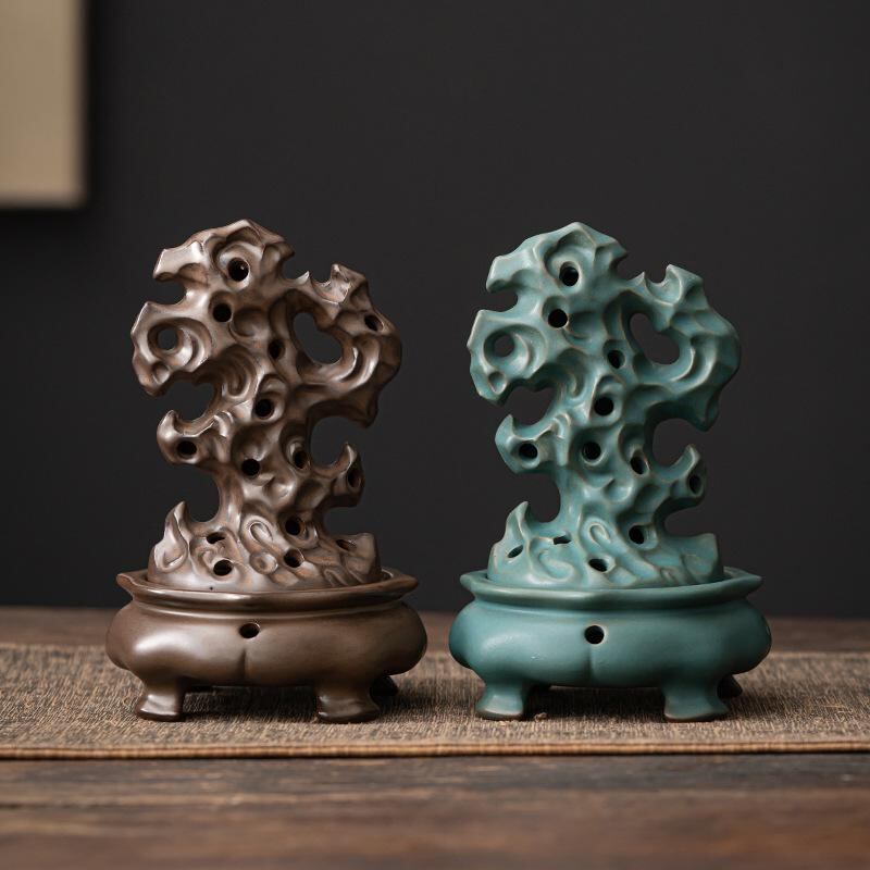 香炉 陶器製 太湖石デザイン レトロ アンティーク調 中国風 禅風 室内 家庭用 アロマ 線香立て 癒し 瞑想 インテリア 置物 オブジェ リビング 書斎 和室 玄関 レトロブラウン 窯変グリーン