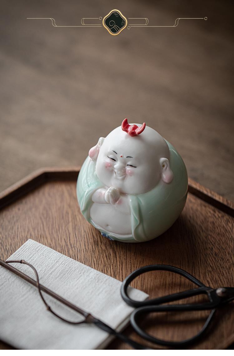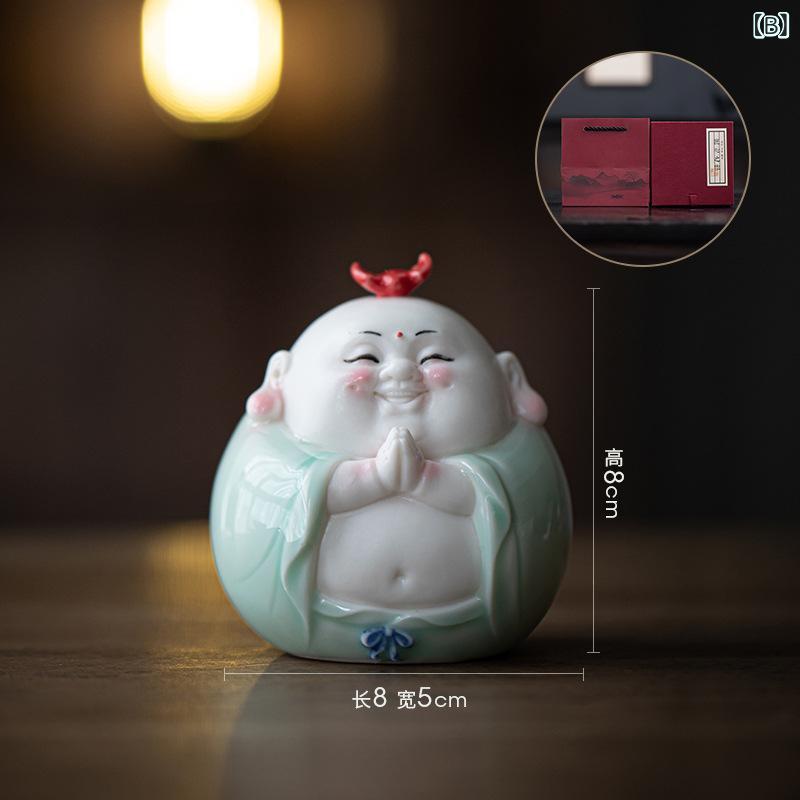 置物 陶器製 ユニーク 太鼓腹 弥勒仏 布袋様 笑い仏 金運招来 招福 開運 縁起物 リビング オフィス 卓上 インテリア 装飾 工芸品 中国風