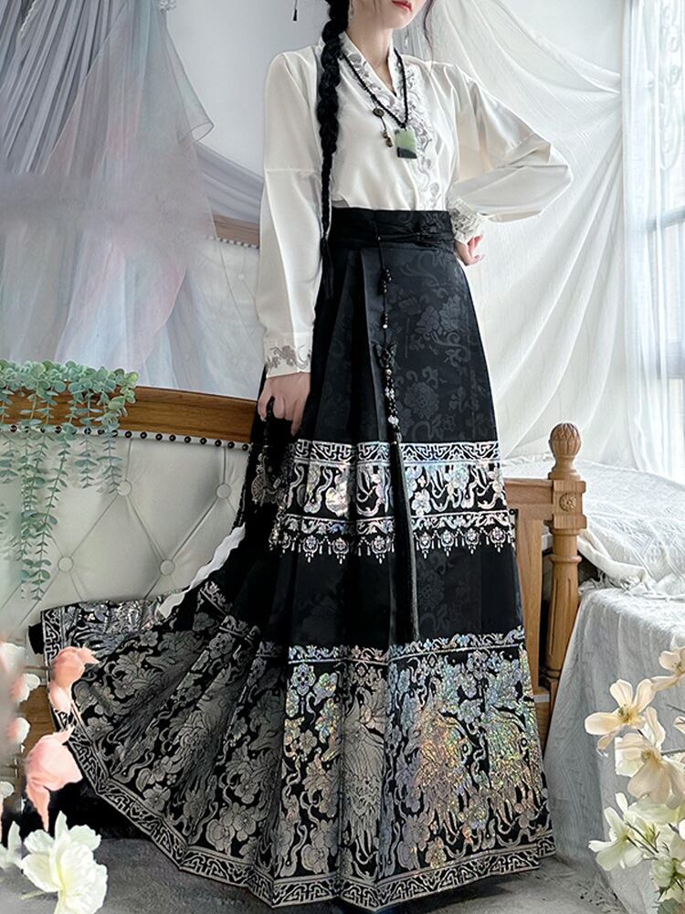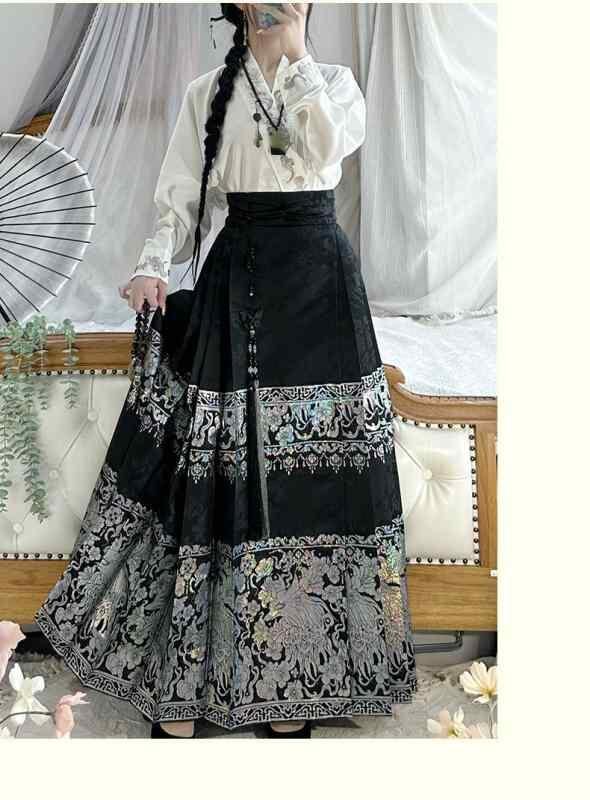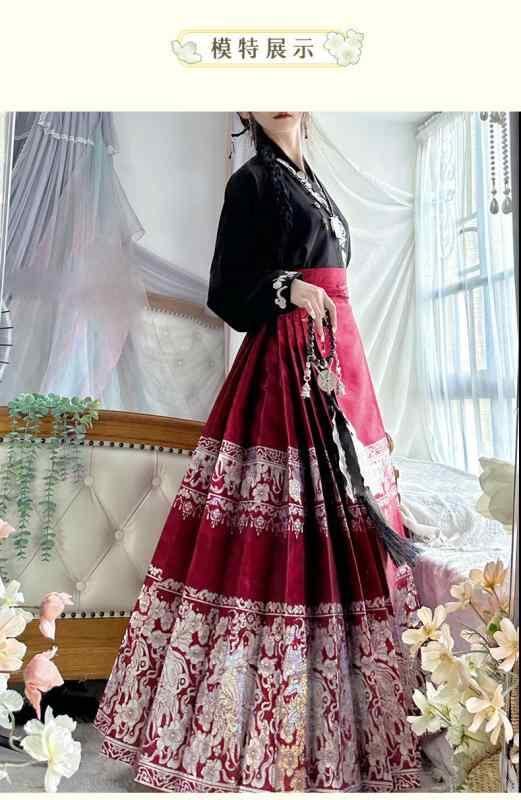 漢服 レディース 馬面スカート セットアップ 中国風 民族衣装 エスニック 狐仙 豪華な織り柄 ポリエステル素材 普段使い 通勤用 イベント衣装 春秋 ブラック ホワイト レッド | cybercart