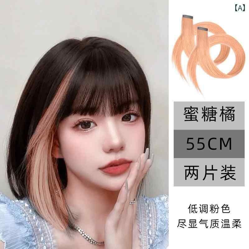 ヘアピース レディース 女性用 イヤーカフ風 ポイントカラー エクステ ワンタッチ クリップ式 メッシュ 差し色 ロング ストレート カラフル 自然な仕上がり 耐熱ファイバー ファッション 普段使い