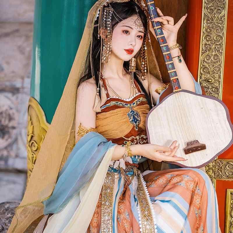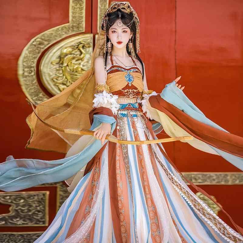 民族衣装 敦煌飛天 中国風 改良漢服 エスニック 異国風 パフォーマンス 舞台衣装 フォトスタジオ 旅行撮影 シフォン ポリエステル
