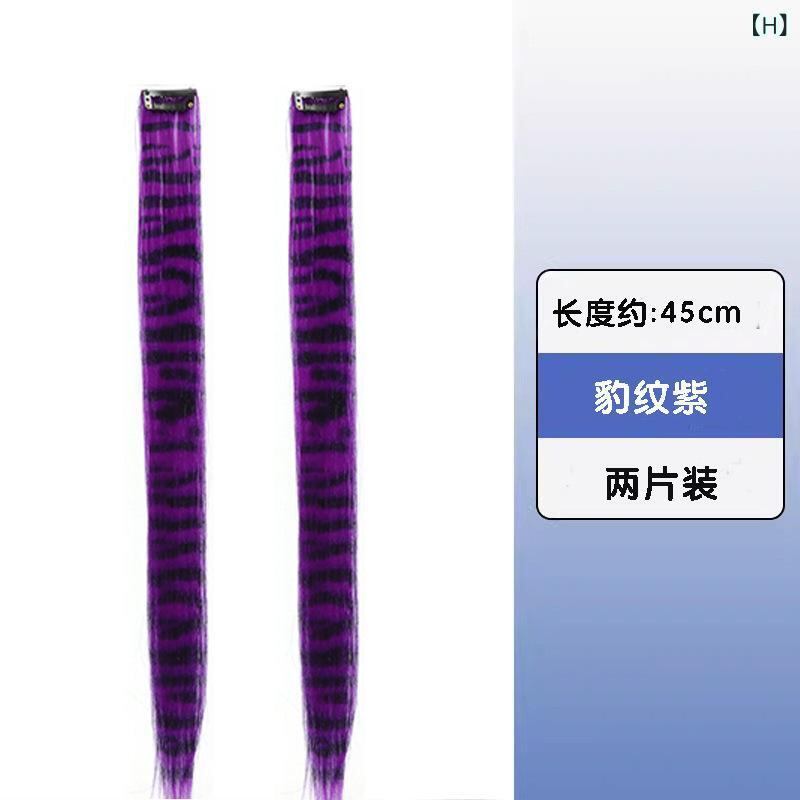 ヘアピース レディース 女性用 エクステ ハイライト グラデーション ヒョウ柄 レオパード イヤリングカラー インナーカラー ロング ストレート カラーメッシュ 派手髪 耐熱ファイバー 簡単装着 クリップ式 1枚タイプ 普段使い イベント イメチェン