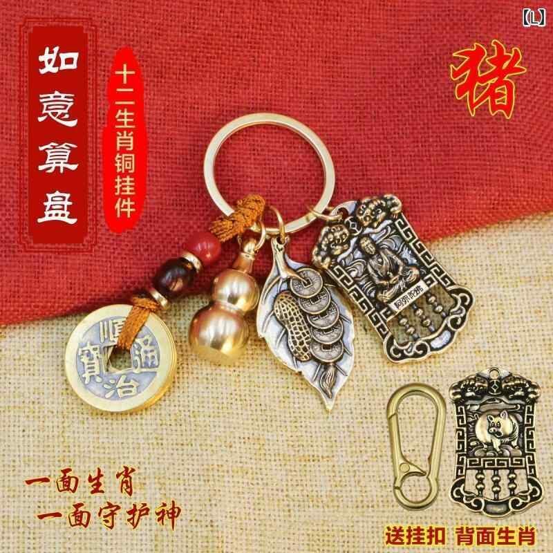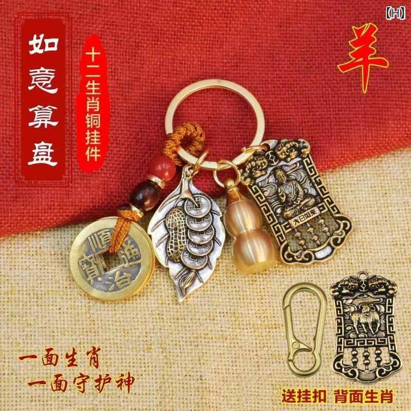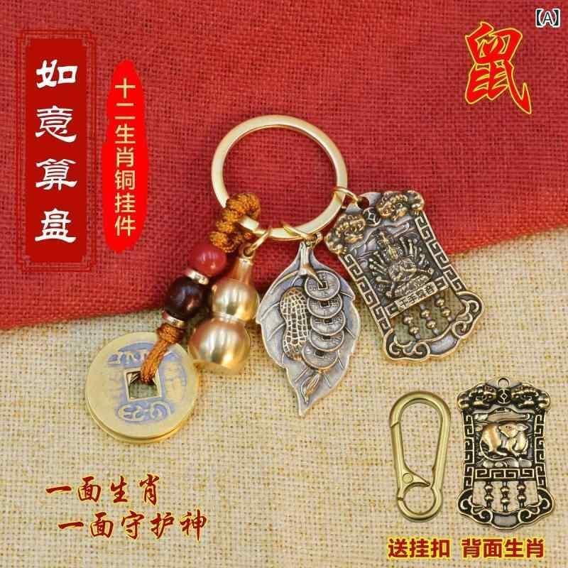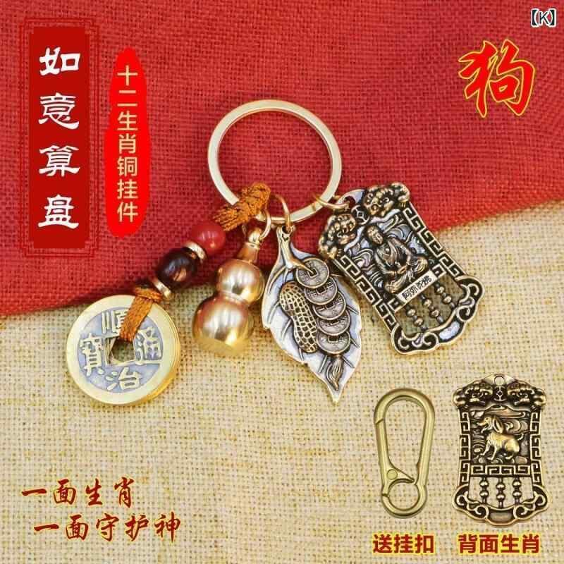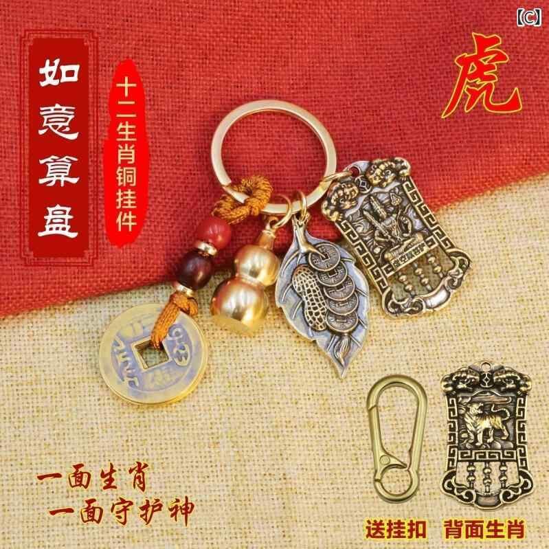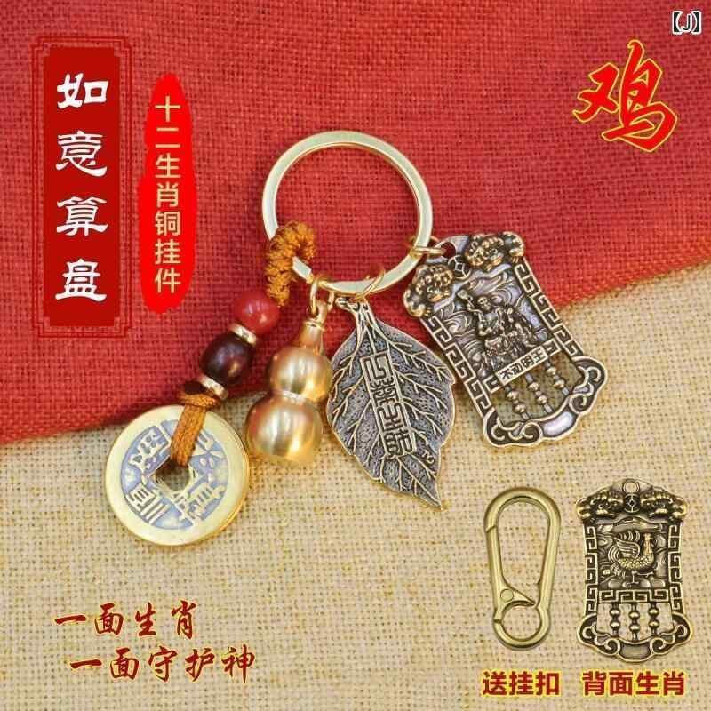 キーホルダー 真鍮製 十二支 守護神 五帝銭 瓢箪 算盤 開運 金運 風水 商売繁盛 財運向上 縁起物 お守り バッグチャーム ラッキーアイテム モダン シンプル プレゼント