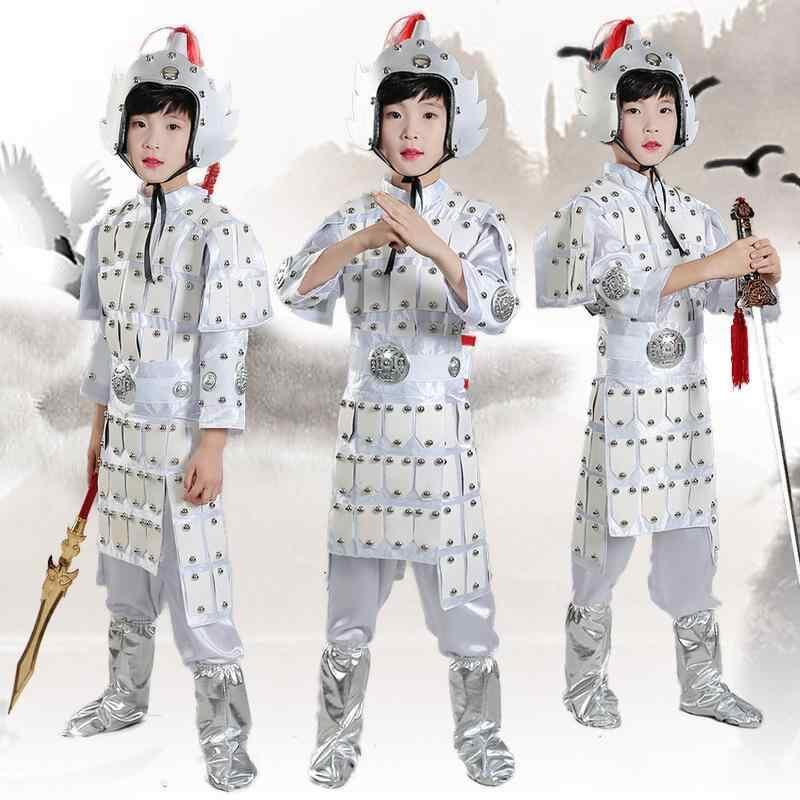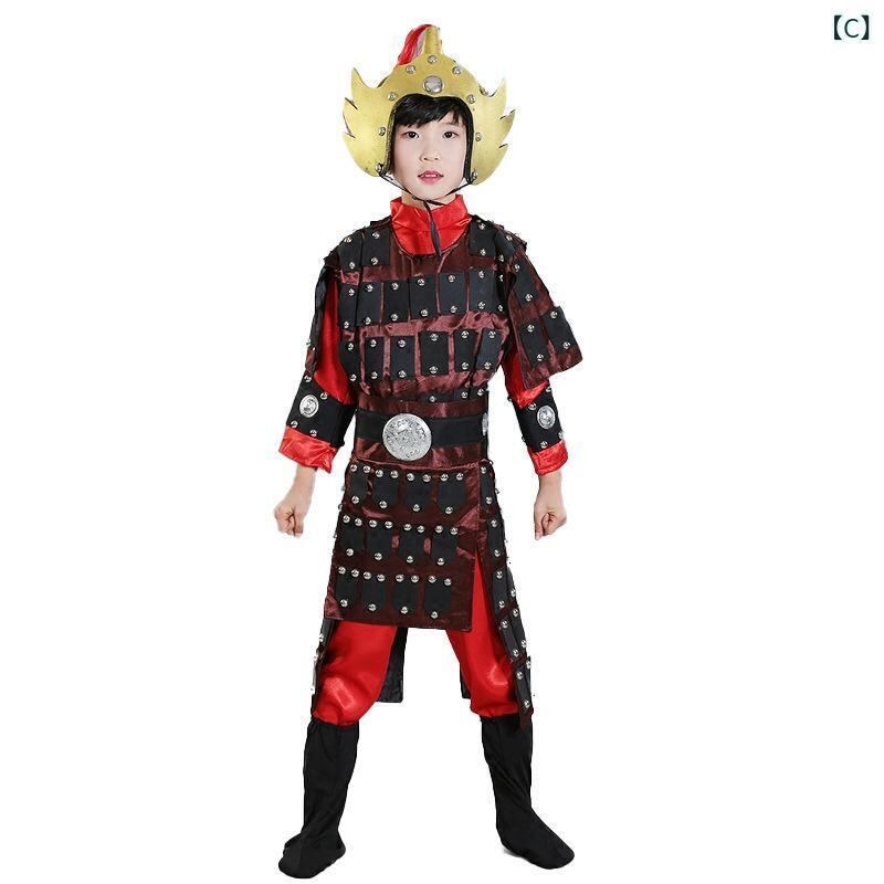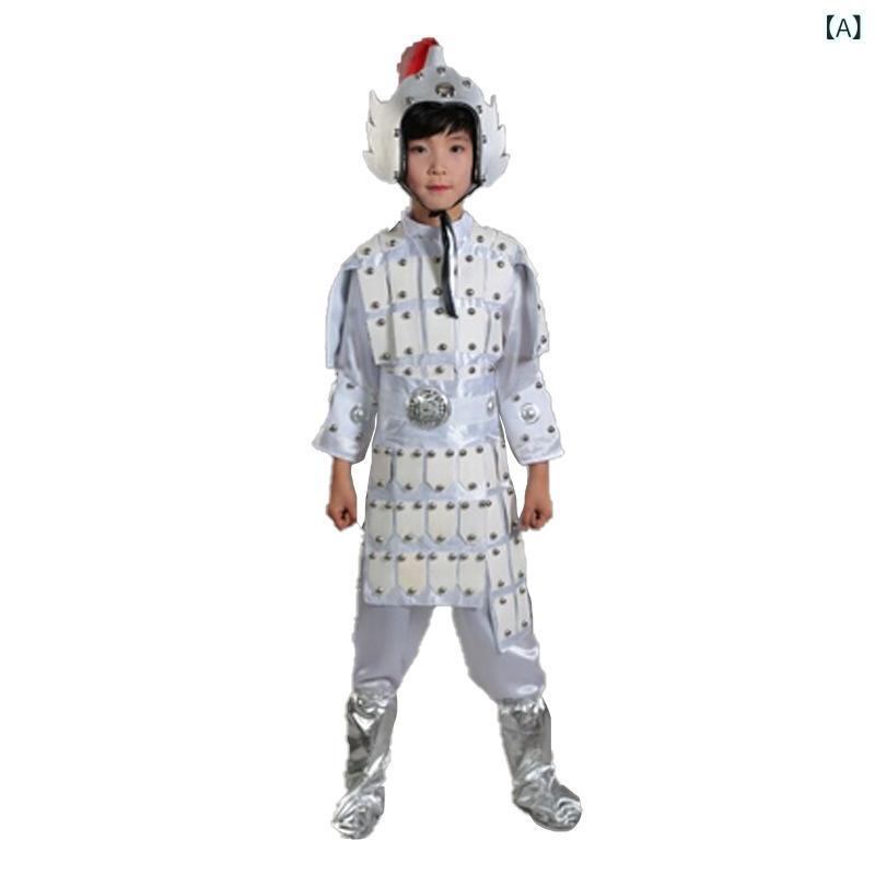 コスチューム キッズ 子供 男女兼用 古代兵士 将軍 鎧 甲冑 舞台衣装 発表会 演出服 イベント 学芸会 時代劇 アクリル繊維 ホワイト レッド ブラック 仮装 衣装