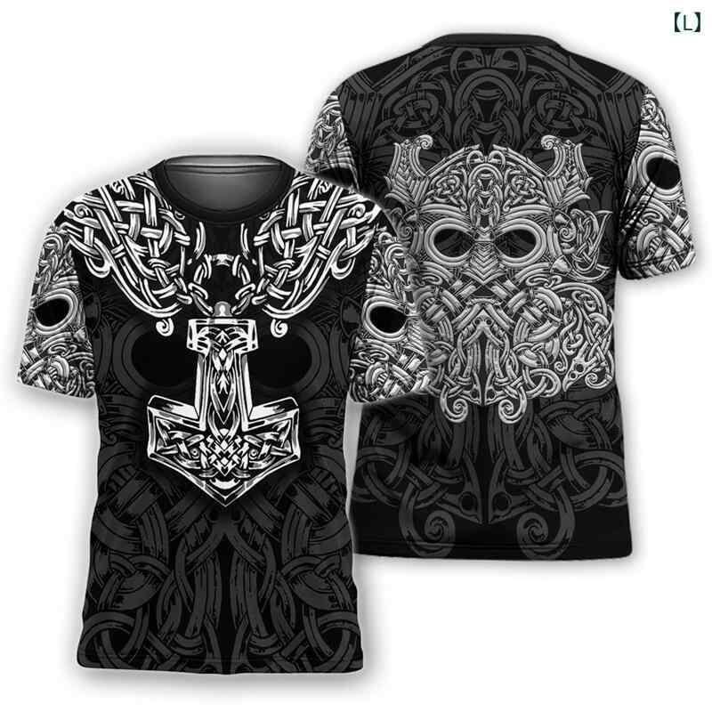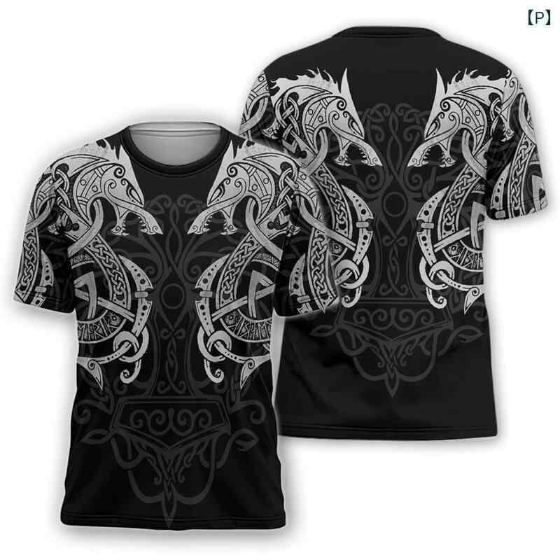 Tシャツ メンズ バイキング柄 3Dプリント 半袖 クルーネック ゆったり ルーズフィット ポリエステル 通気性 吸湿速乾 カジュアル 普段使い 夏用