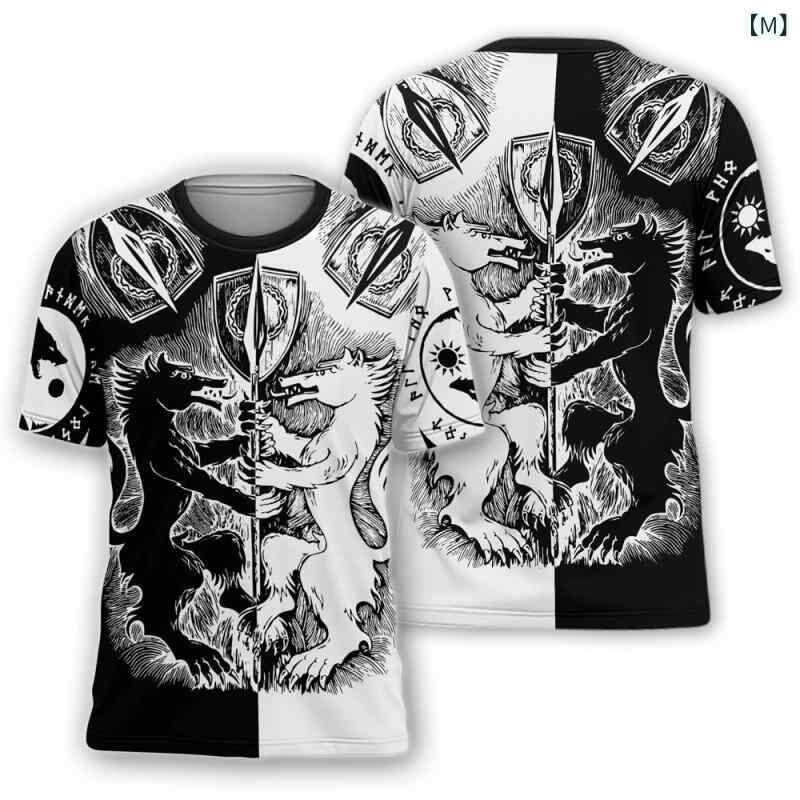 Tシャツ メンズ ヴァイキング神話 3Dデジタルプリント クルーネック 丸首 半袖 ポリエステル 速乾性 通気性 防しわ 個性的 ファッション スポーツカジュアル 普段使い ストレートシルエット トップス