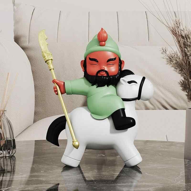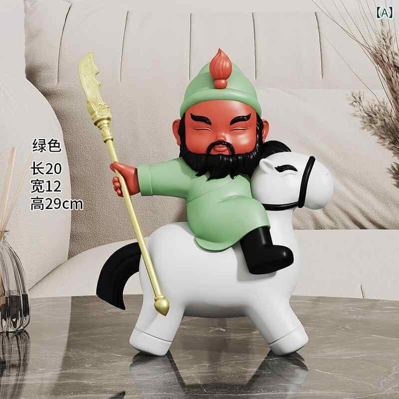 置物 関羽 武聖 像 招財 開運 金運 ラッキーアイテム 縁起物 樹脂製 工芸品 インテリア オブジェ リビング 玄関 オフィス デスク 茶室 書斎 店舗用 ディスプレイ 緑 赤 | cybercart