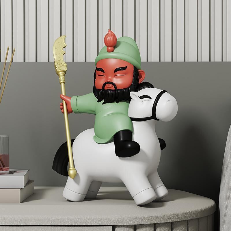 置物 関羽 武聖 像 招財 開運 金運 ラッキーアイテム 縁起物 樹脂製 工芸品 インテリア オブジェ リビング 玄関 オフィス デスク 茶室 書斎 店舗用 ディスプレイ 緑 赤
