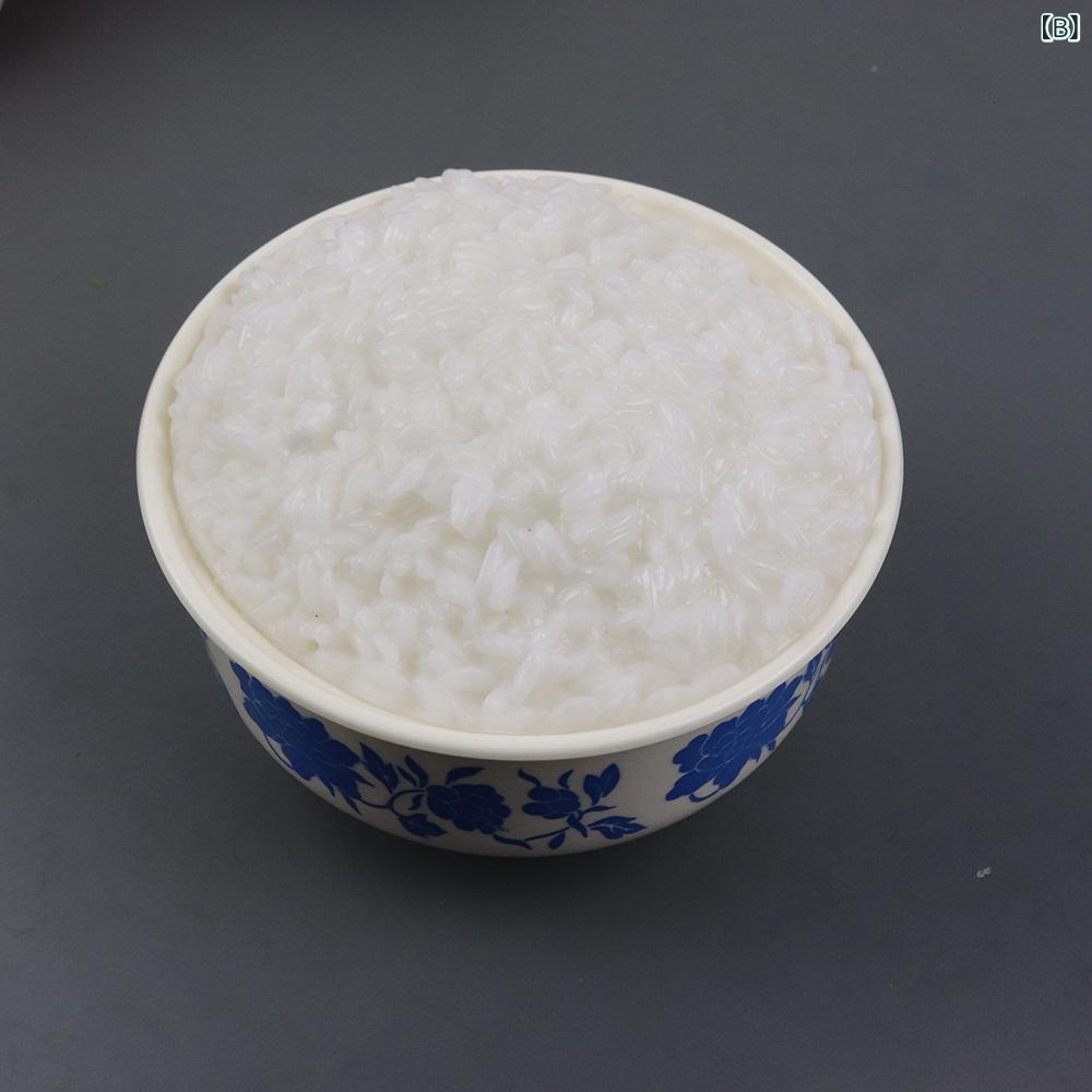 食品サンプル 大盛り 白ご飯 フェイクフード リアル 本物そっくり PVC製 ディスプレイ 店舗用 レストラン用 キッチン装飾 撮影小道具 写真撮影 映画撮影 業務用 置物 黒碗 青と白の陶磁器風