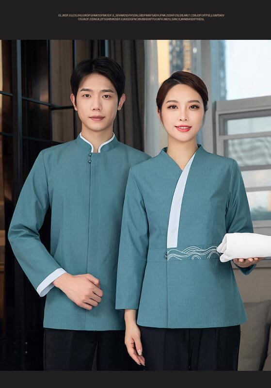 作業服 男女兼用 ユニフォーム 清掃業 ホテル 旅館 宿泊施設 美容院 物件管理 サービス業 業務用 ワークウェア 長袖 防寒 綿麻混紡