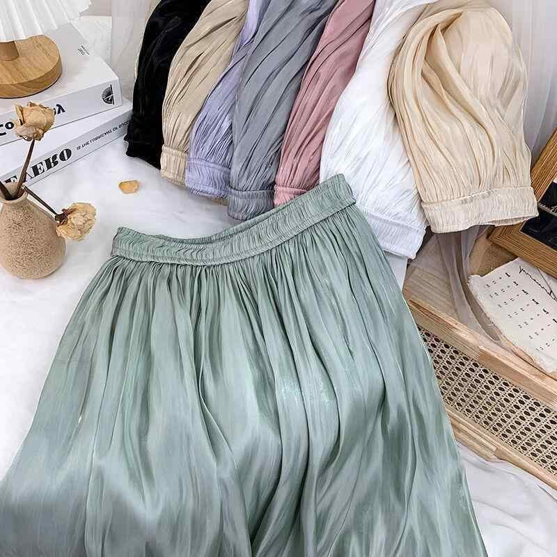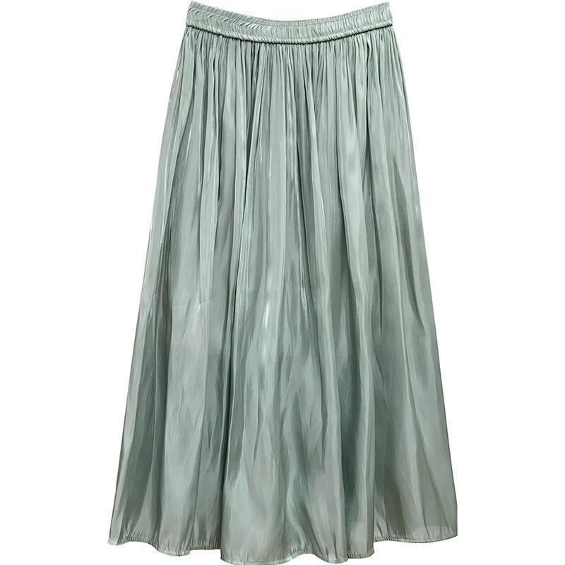 スカート レディース 大きいサイズ 光沢 シフォン プリーツ Aライン ハイウエスト ミモレ丈 ロングスカート 薄手 体型カバー 着痩せ 上品 エレガント フェミニン きれいめ 夏物