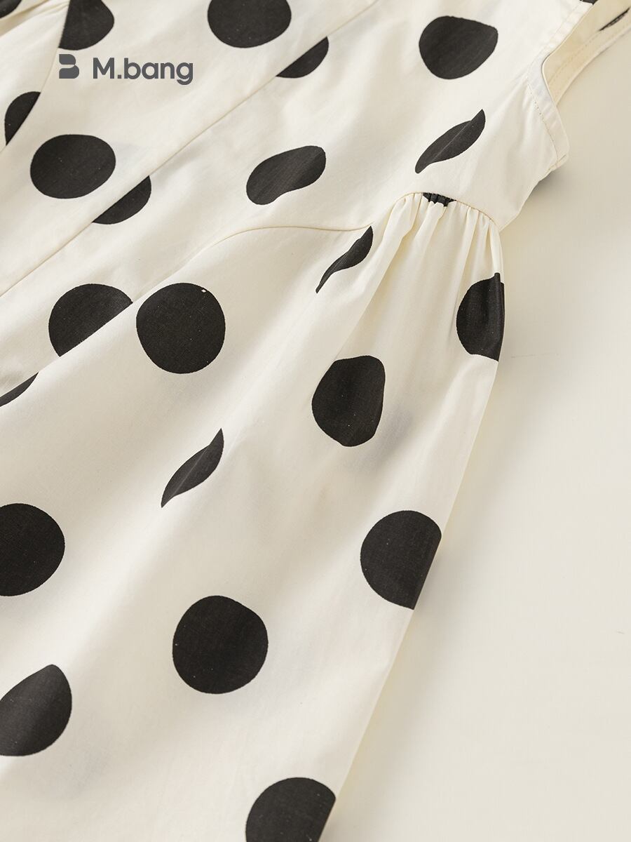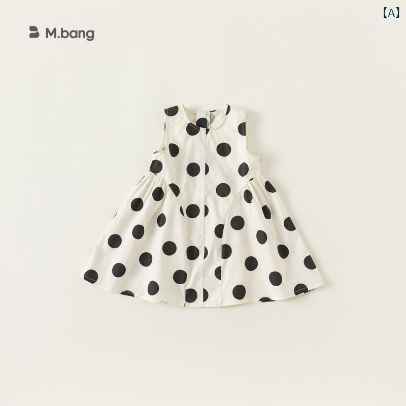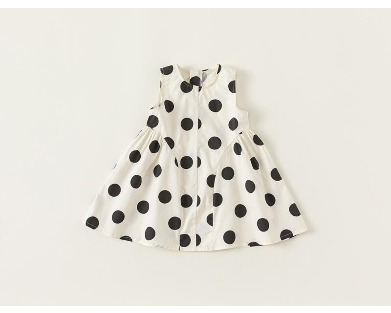 ワンピース 女の子 キッズ 子供服 ノースリーブ ジャンパースカート キャミソールワンピース ブラック ドット柄 水玉模様 コットン Aライン 夏物 おしゃれ かわいい 韓国風 カジュアル お出かけ着