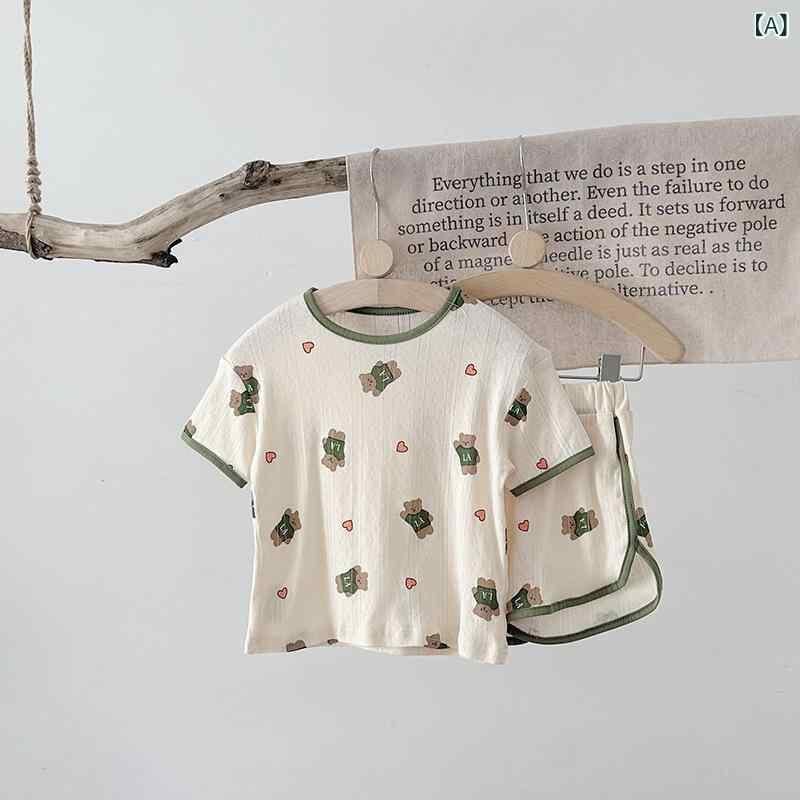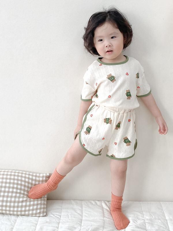 パジャマ ルームウェア 子供 キッズ ベビー 男の子 女の子 男女兼用 半袖 上下セット くま柄 アニマル柄 韓国風 かわいい 綿100% コットン 柔らかい肌触り 夏用 部屋着 寝巻き 普段使い 通気性 吸湿速乾 快適