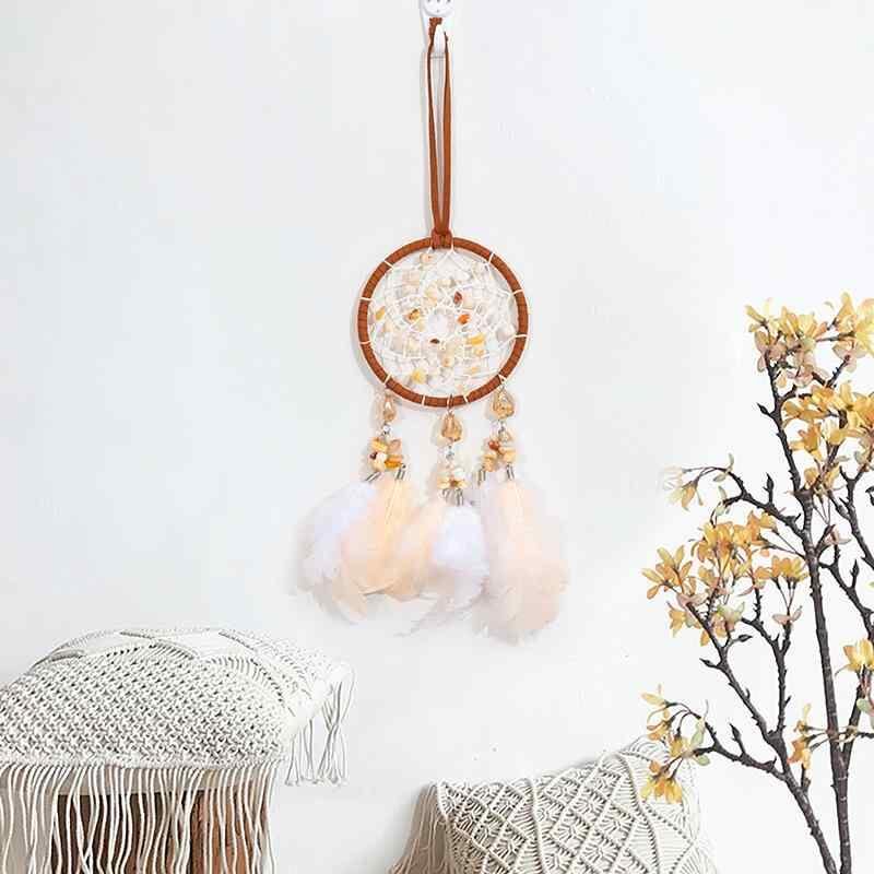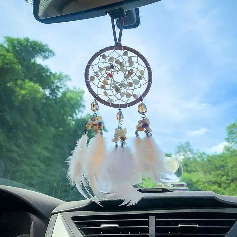 カーアクセサリー 手作り クリエイティブ さざれ石 天然石 パワーストーン 羽 フェザー 回転式 車用バックミラー飾り 車内装飾 吊り下げ アメリカーンスタイル