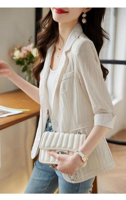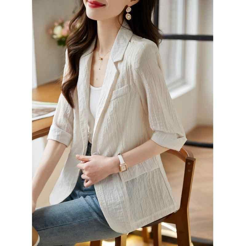 ジャケット レディース 無地 シフォン素材 五分袖 フリルカラー カジュアル ストリート系 軽量 UVカット レギュラーフィット 普通丈