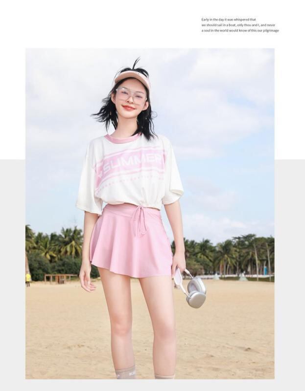 水着 レディース セパレート スカート 半袖 ラッシュガード UVカット 体型カバー 細見え スポーツ ノンワイヤー パッド付き 速乾性 露出控えめ 学生向け 3点セット