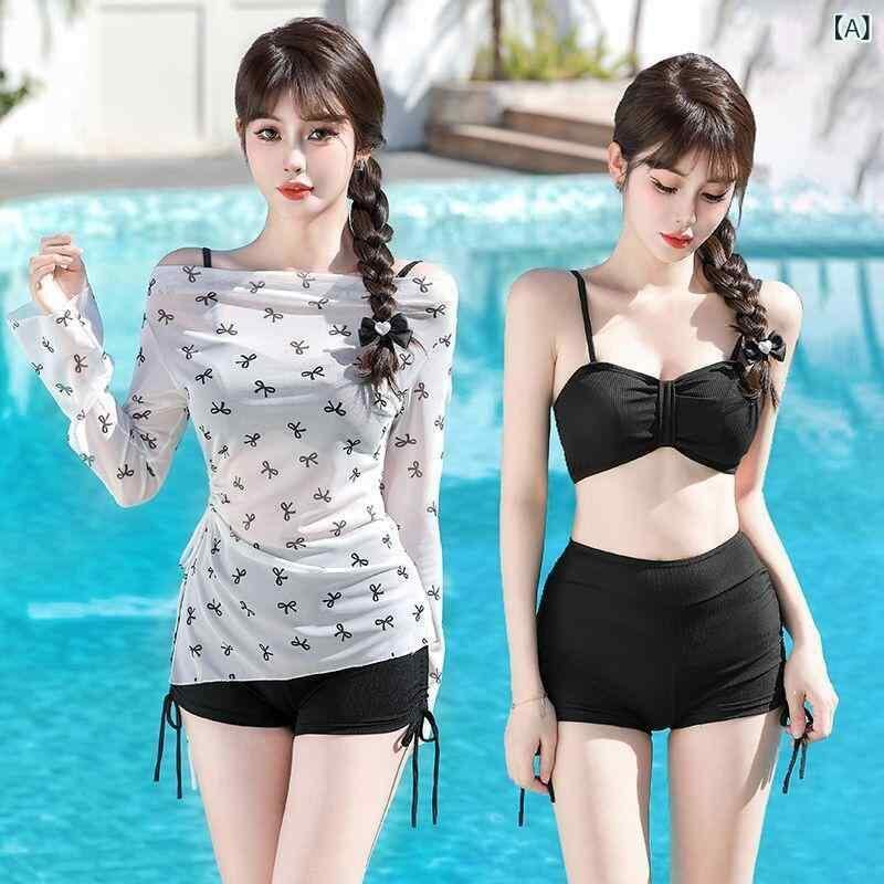 水着 レディース セパレート 3点セット 長袖 ラッシュガード UV対策 日焼け対策 温泉 プール 海水浴 リゾート 大人かわいい セクシー フェミニン 再生繊維 ポリエステル ノンワイヤー カップ付き ブラック レッド