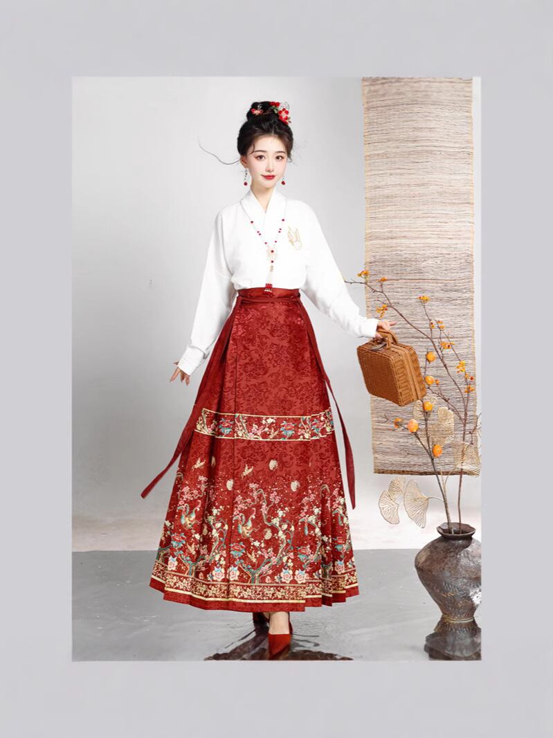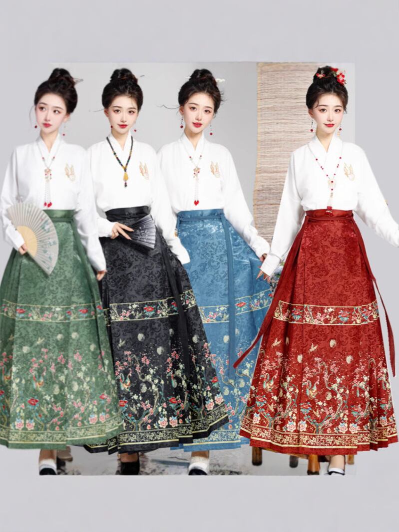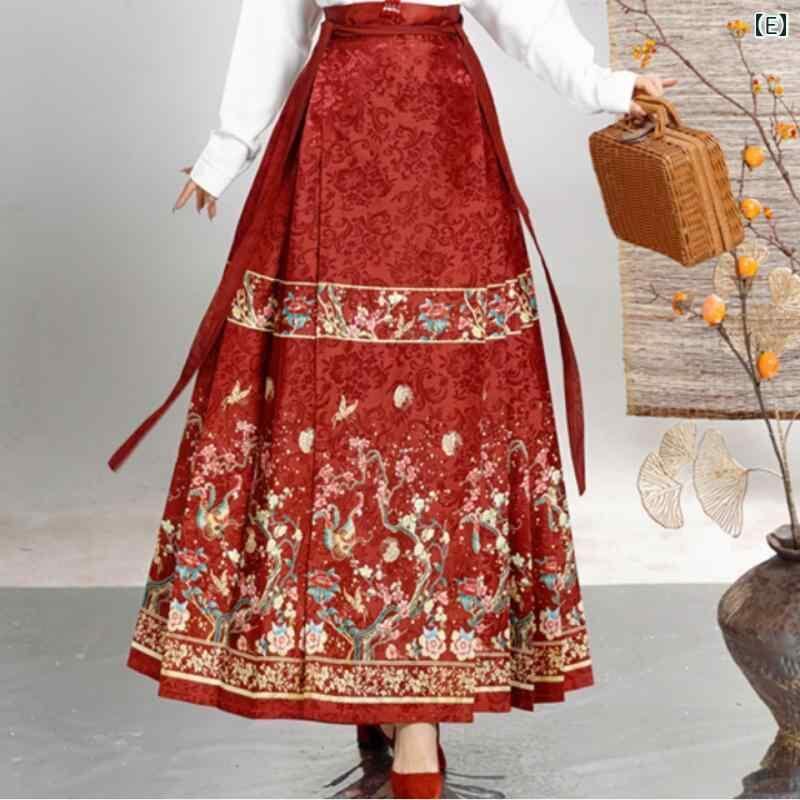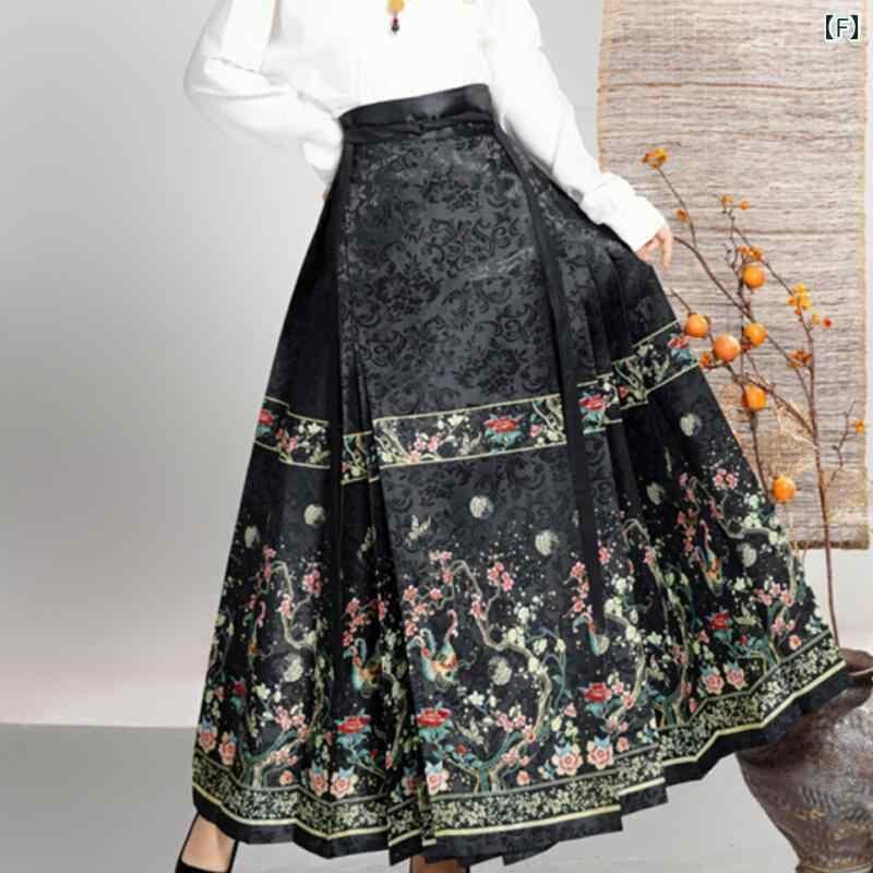 馬面スカート レディース 女性用 ジャガード織り 動物柄 細見え 着痩せ 体型カバー 漢服 新中華風 エスニックテイスト ポリエステル素材 普段使い デイリーユース 秋 ロングスカート マキシ丈 レッド ブラック グリーン ブルー 結び紐デザイン