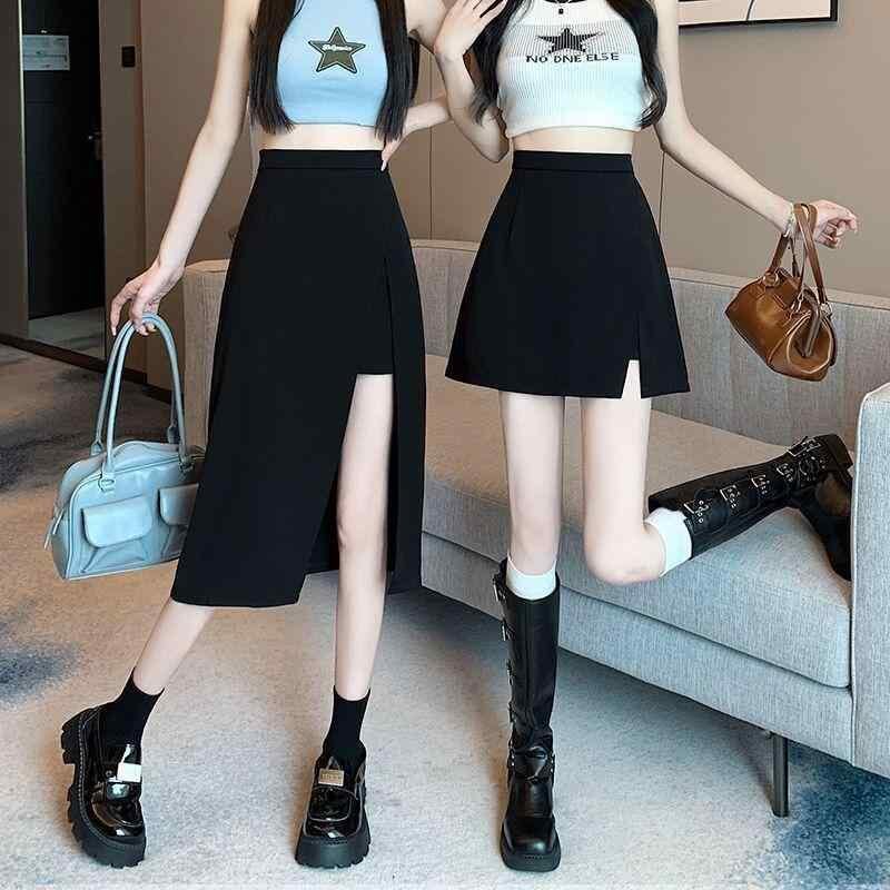半身スカート レディース Aライン ミモレ丈 ハイウエスト アシメスリット ブラック 黒 大きいサイズ ゆったり 秋 冬 ポリエステル ニット ストレッチ オフィス カジュアル 通勤 普段使い