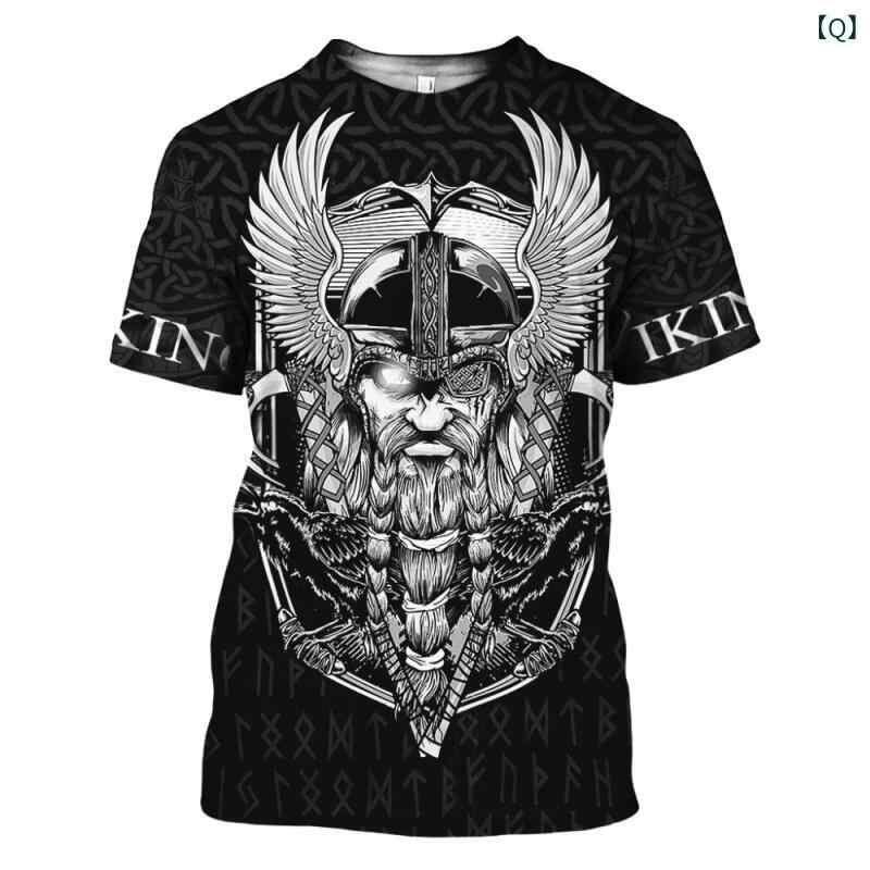 Tシャツ メンズ バイキング柄 3Dプリント デジタルプリント 半袖 クルーネック ポリエステル 吸湿速乾 スリムフィット 薄手 夏用 普段使い カジュアル