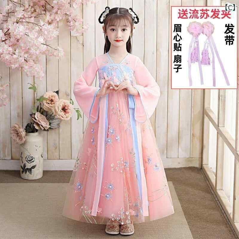 漢服 女の子 中国風 古風 唐装 伝統衣装 春 夏 秋 オールシーズン 花柄 華やか 優雅 ポリエステル 柔らか加工 キッズ 子供服 女児 小学生 園児