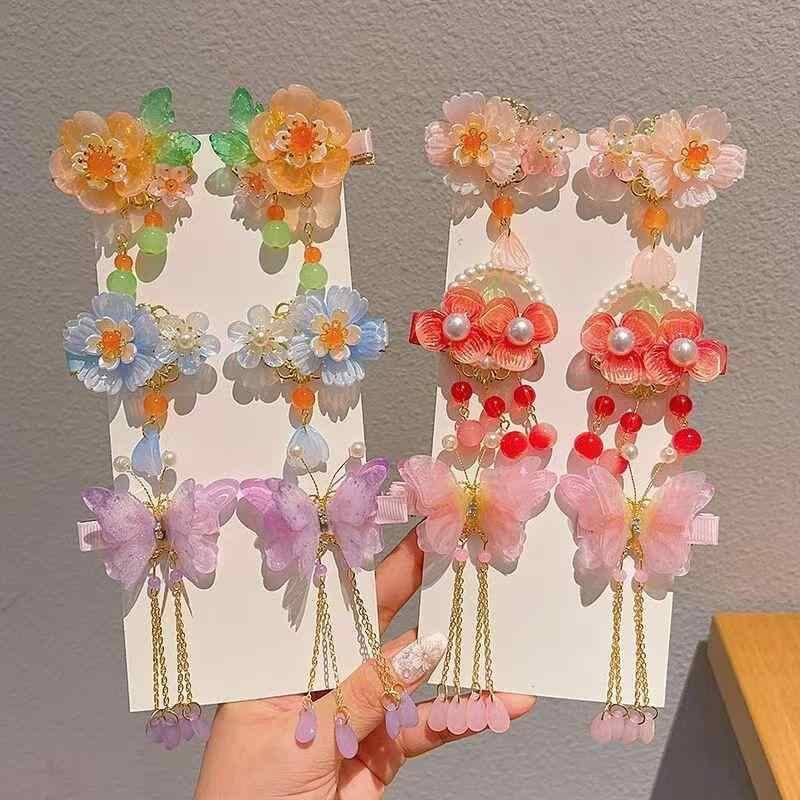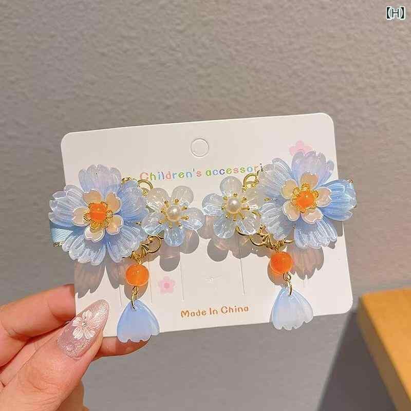 髪飾り 女の子 キッズ 漢服 中華風 古風 琉璃 フラワー タッセル フリンジ ヘアクリップ 前髪留め アクリル製 レトロモダン 伝統文様 吉祥柄 お祭り 七五三 発表会 イベント 和装 着物 浴衣 多彩な色合い | cybercart