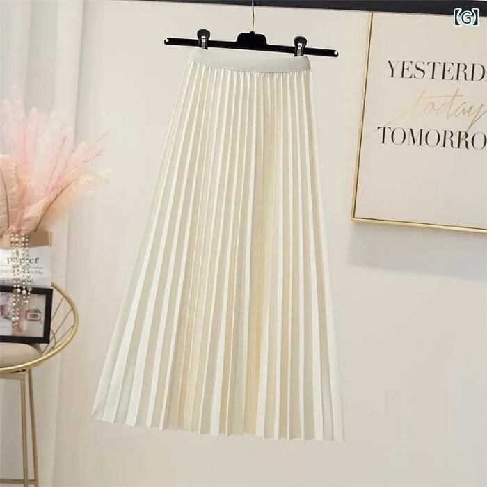 スカート レディース 大きいサイズ サテン 無地 プリーツ フレア ミモレ丈 上品 エレガント 着回し カジュアルスタイル ポリエステル ブラック アイボリー
