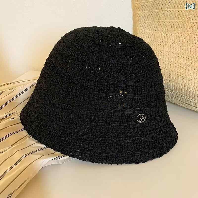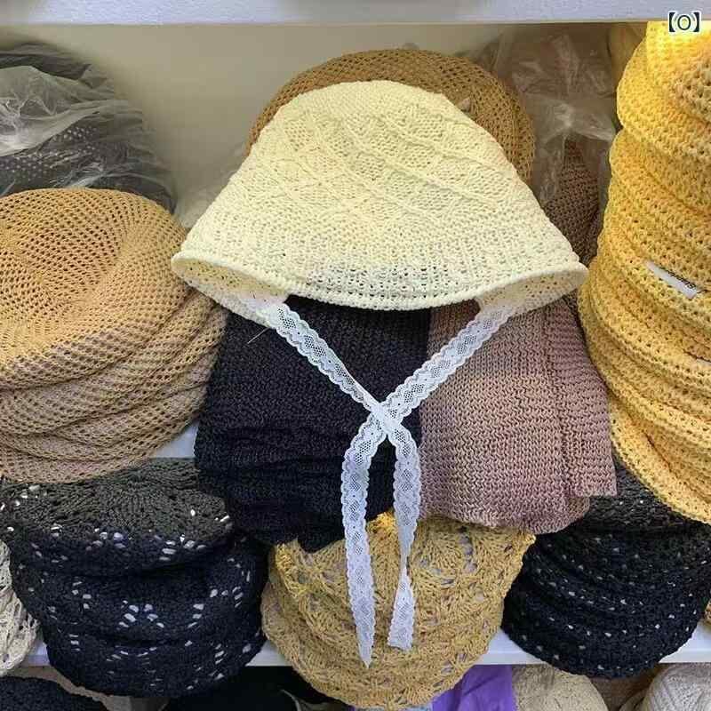 バケットハット レディース 春夏 薄手 ニット 編み込み ツイスト 丸トップ ショートブリム 通気性 UVカット 日除け ポリエステル 韓国風 合わせやすい インスタ風 黒 ベージュ キャメル カーキ 帽子