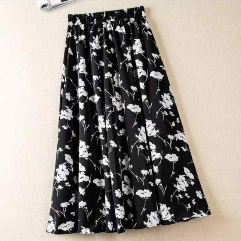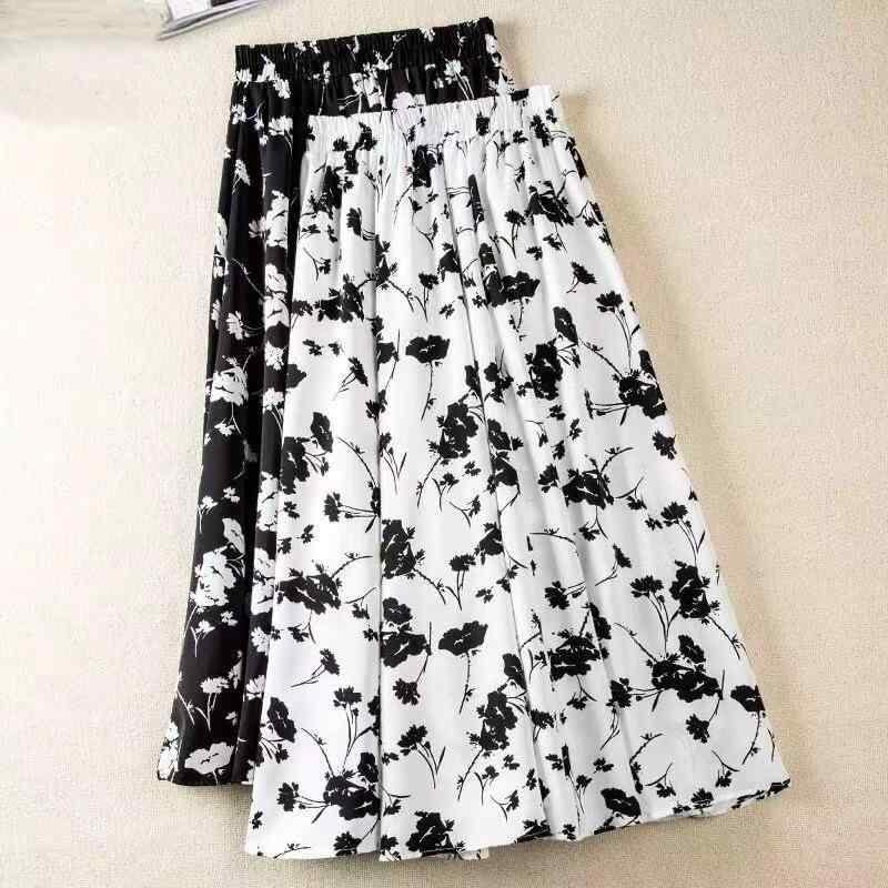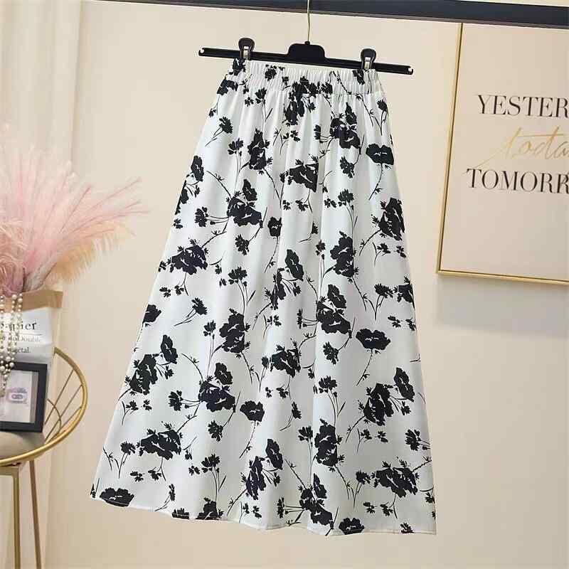 スカート レディース ミディ丈 Aライン フレア 花柄 小花柄 ハイウエスト 細見え 体型カバー エレガント 上品 きれいめ 小柄さん向け ポリエステル 通勤 オフィス カジュアル 白 黒