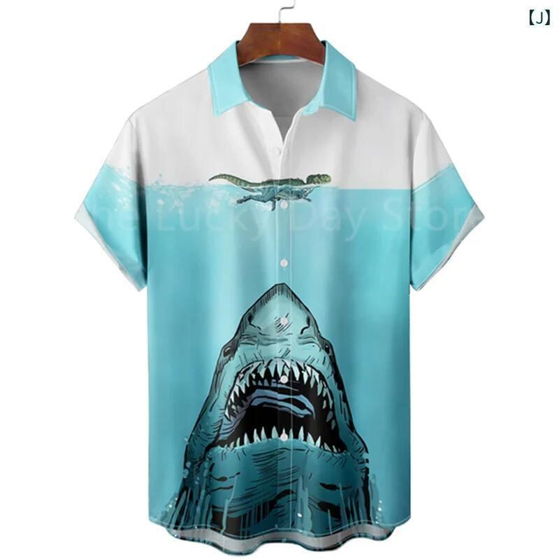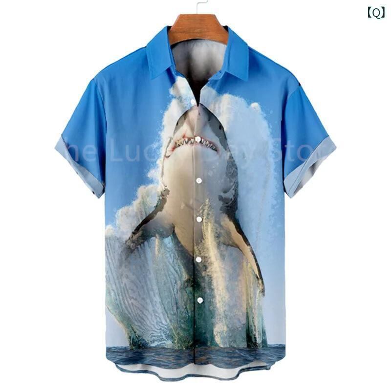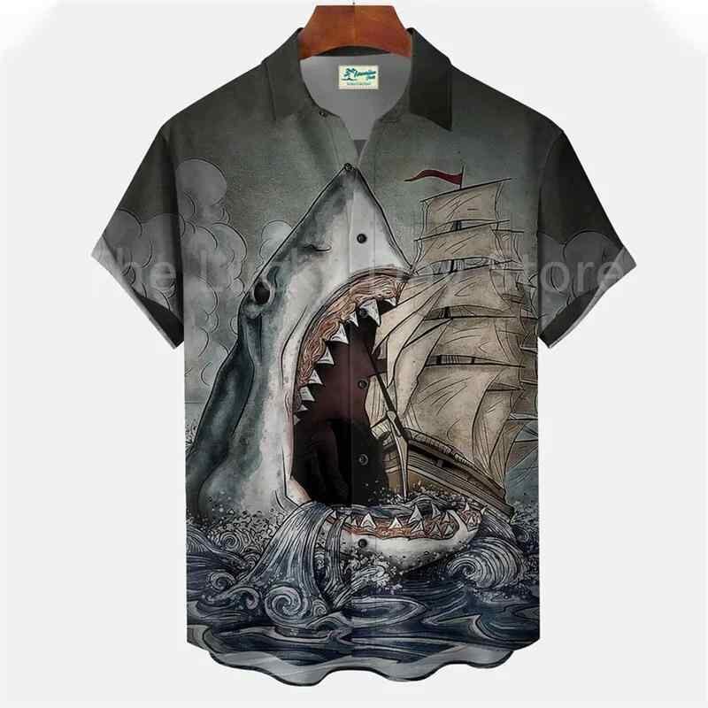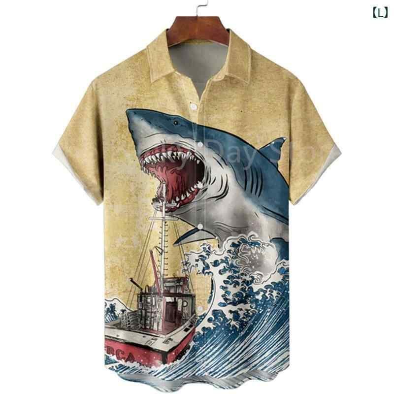 シャツ メンズ 男性用 レトロ ハワイアン 花柄 半袖 オープンカラー サメ 海底 プリント ポリエステル 4WAYストレッチ 高伸縮 洗濯可能 ルーズフィット ビッグシルエット 大人カジュアル きれいめカジュアル 夏服 アロハシャツ