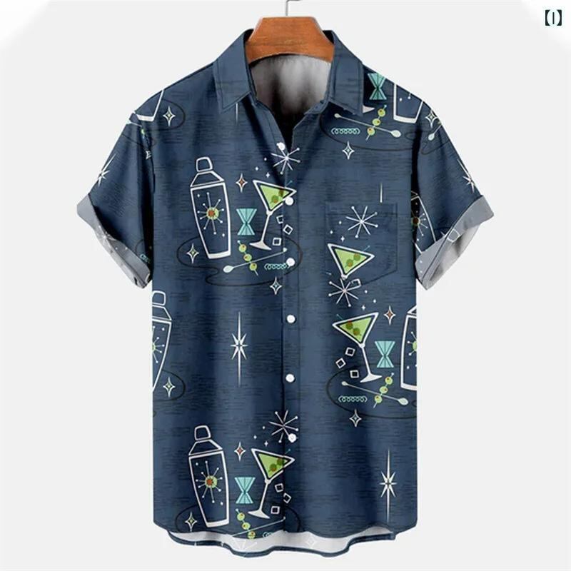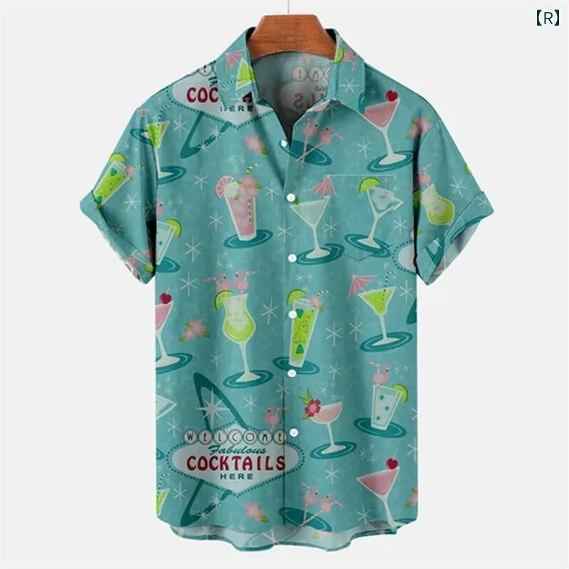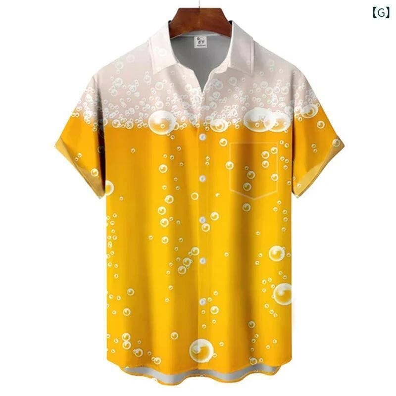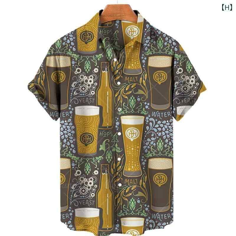 シャツ メンズ 夏用 ビール柄 アロハシャツ 高級感 ビッグシルエット ゆったり 半袖 ポリエステル 伸縮性 洗濯機洗い可 大人カジュアル リゾート 普段使い