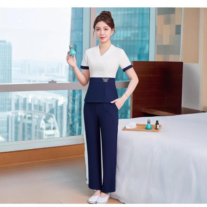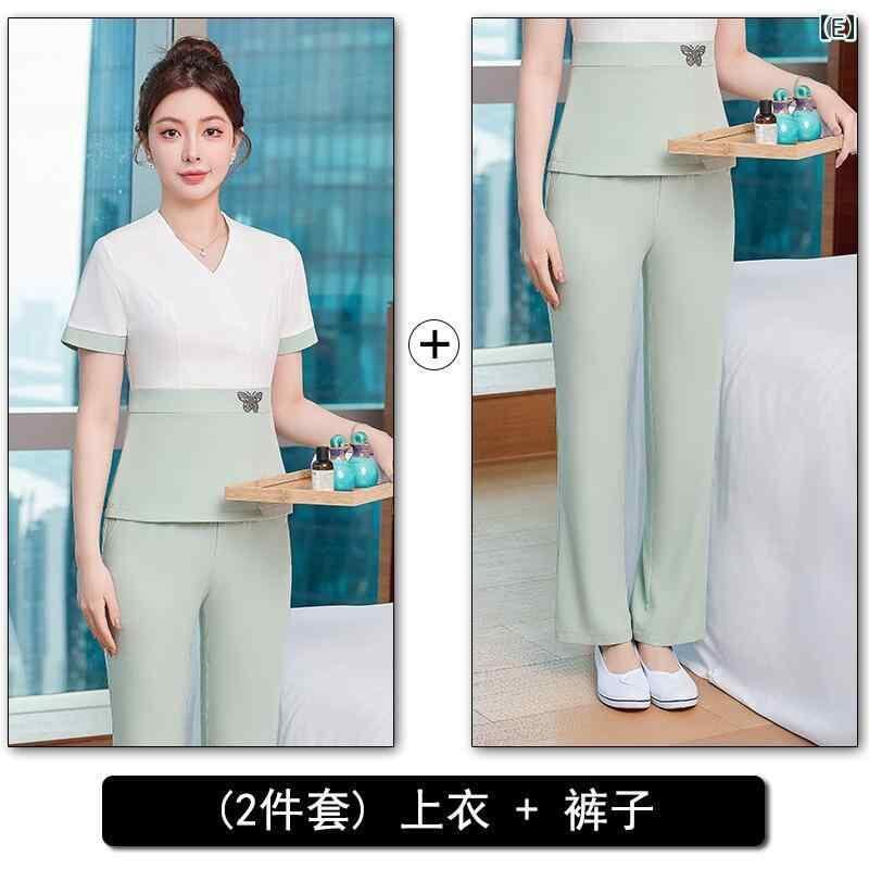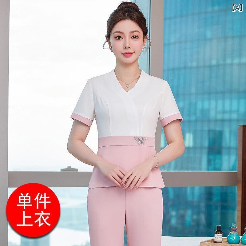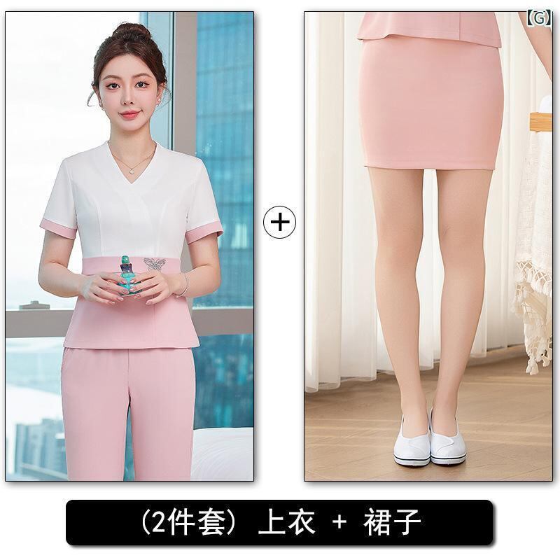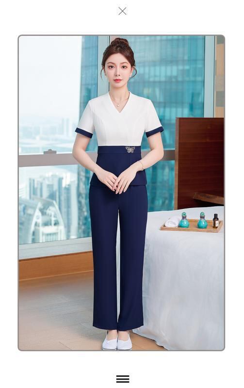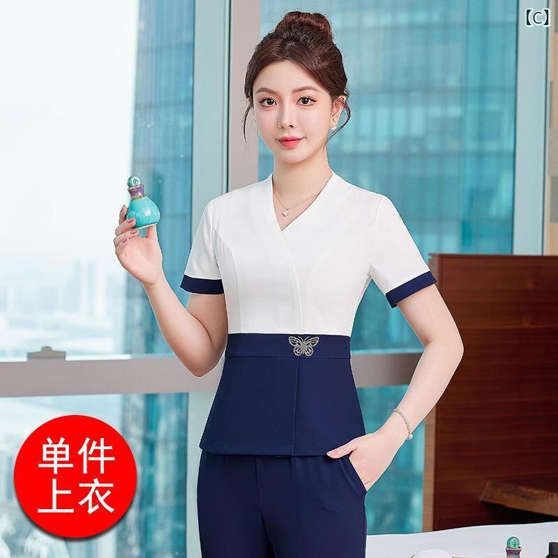 セットアップ レディース 半袖 エステ スパ 足つぼ サロン 美容室 美容師 制服 ポリエステル スパンデックス 快適 カジュアル 配色デザイン