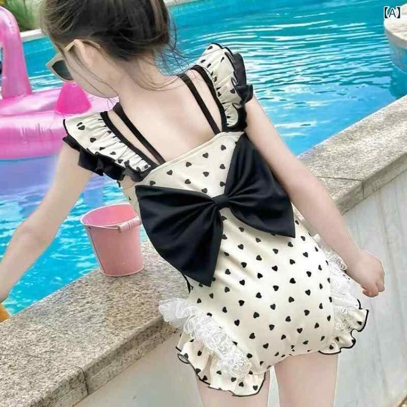 水着 キッズ 女の子 夏 ワンピース スイムウェア 一体型 ハート柄 リボン飾り かわいい おしゃれ ナイロン ポリプロピレン製 プール 海水浴 スイミング ビーチ 子供用水着 | cybercart