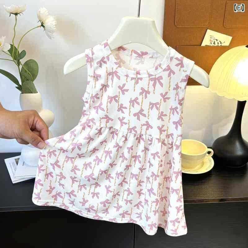 ワンピース キッズ 女の子 夏 花柄 接触冷感 カジュアル ノースリーブ ミディ丈 キャミワンピース ポリエステル 柔らかな肌触り おしゃれ かわいい 切り替えデザイン