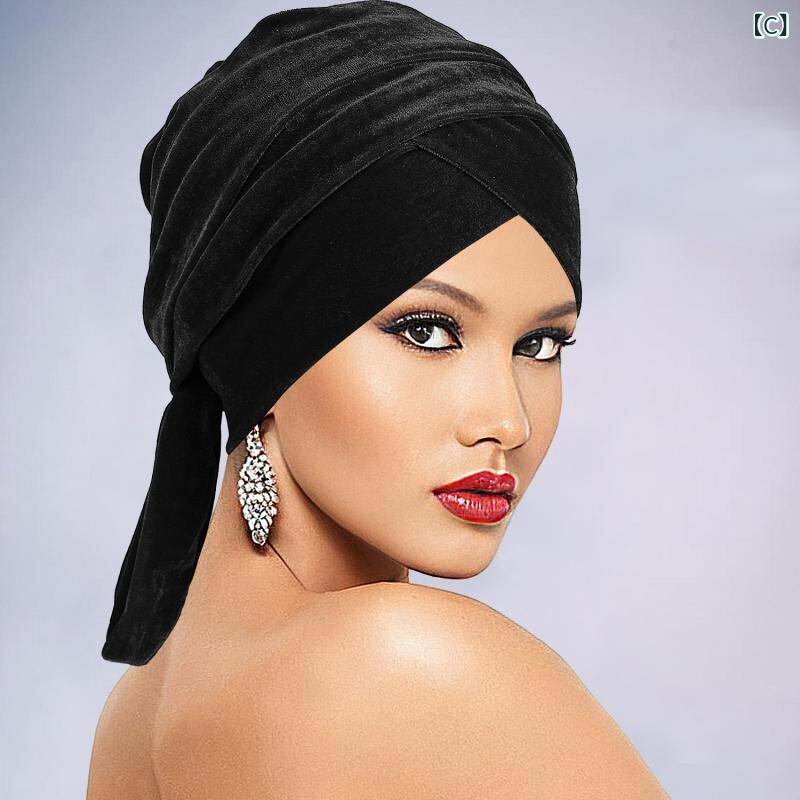 ターバン レディース ベロア 無地 ポリエステル エスニック ロングテール オールシーズン ホワイト系 ネイビー ブラック イエロー系 ワインレッド ブラウン