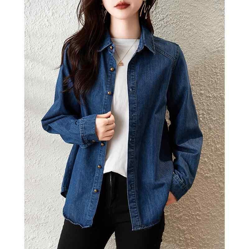 シャツ レディース レトロ調 長袖 デニムシャツ アウター 羽織り 高級感 上品 きれいめ 着痩せ 細見え カジュアル ボタン付き ダークデニム調 都市風