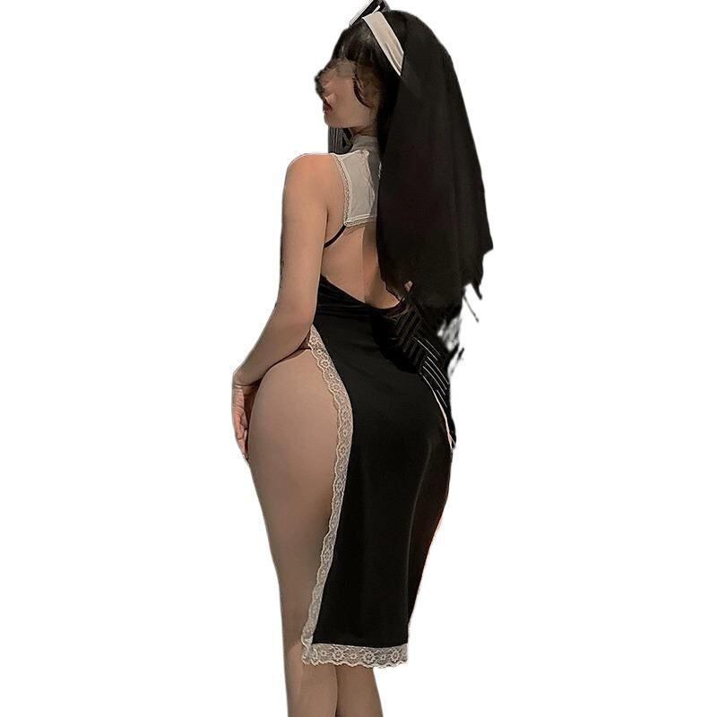 コスプレ レディース プラスサイズ ゴシックシスター ハロウィン 仮装 セクシー レースワンピース ツーピース ミディ丈 ノースリーブ ホルターネック スリット入り コットン素材 イベント衣装