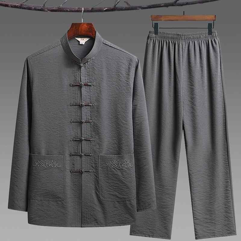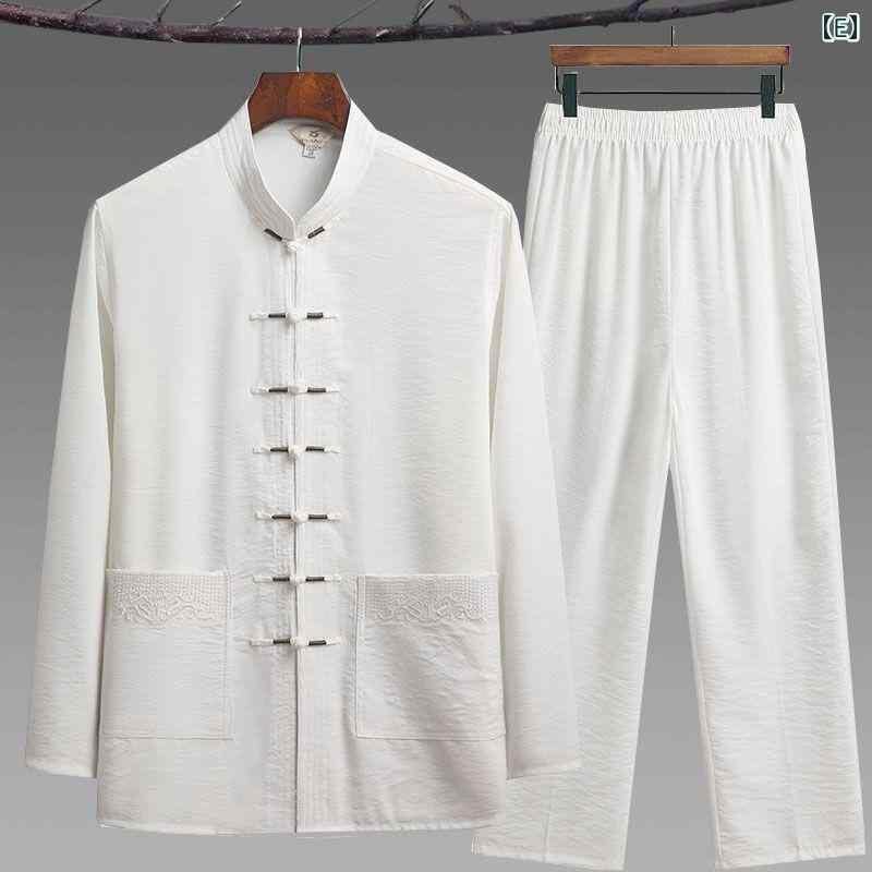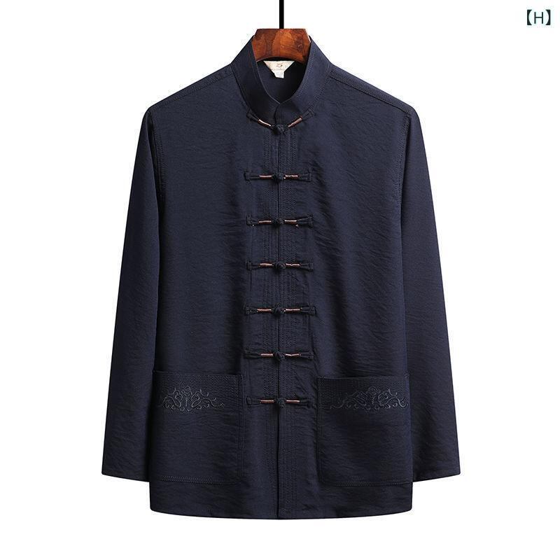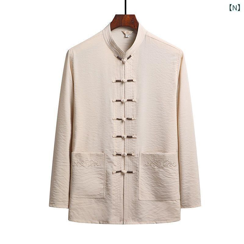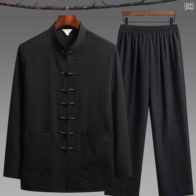中華服 メンズ 長袖 上下セット 春夏用 接触冷感 再生繊維 唐装 太極拳ウェア お父さん 祖父向け