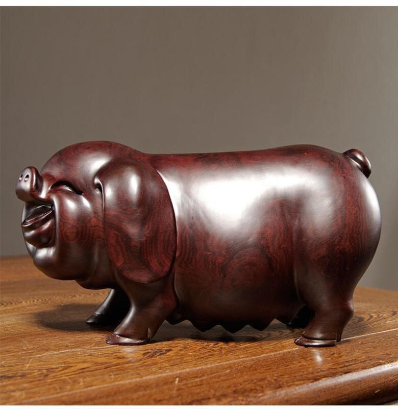 置物 黒檀 無垢材 彫刻 干支 亥 豚 フィギュア 一対 オブジェ インテリア 室内装飾 モダン シンプル 高級感 紅木 工芸品 飾り 引越し祝い 新築祝い ギフト プレゼント 風水 開運
